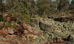 Im ersten Bild links ist im Hintergrund der dunkle, svekofennische Gneis