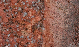 Unten: Die Grenzflächen zwischen dem grobkörnigen Rapakiwi und dem