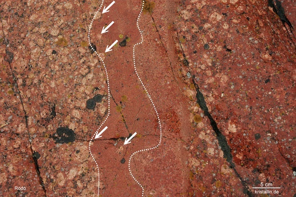 Unterhalb: Porphyraplit im wiborgitischen Rapakiwi.