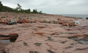 Bucht am nordwestlichen Kontakt von Rapakiwi zu Gneis. N 62° 23′ 4″