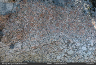 Der Wiborgitblock liegt in der Nähe von Pyterlahti in Südost-Finnland. Sein unterer Teil war ursprünglich von saurem Boden bedeckt und wurde deshalb komplett gebleicht.