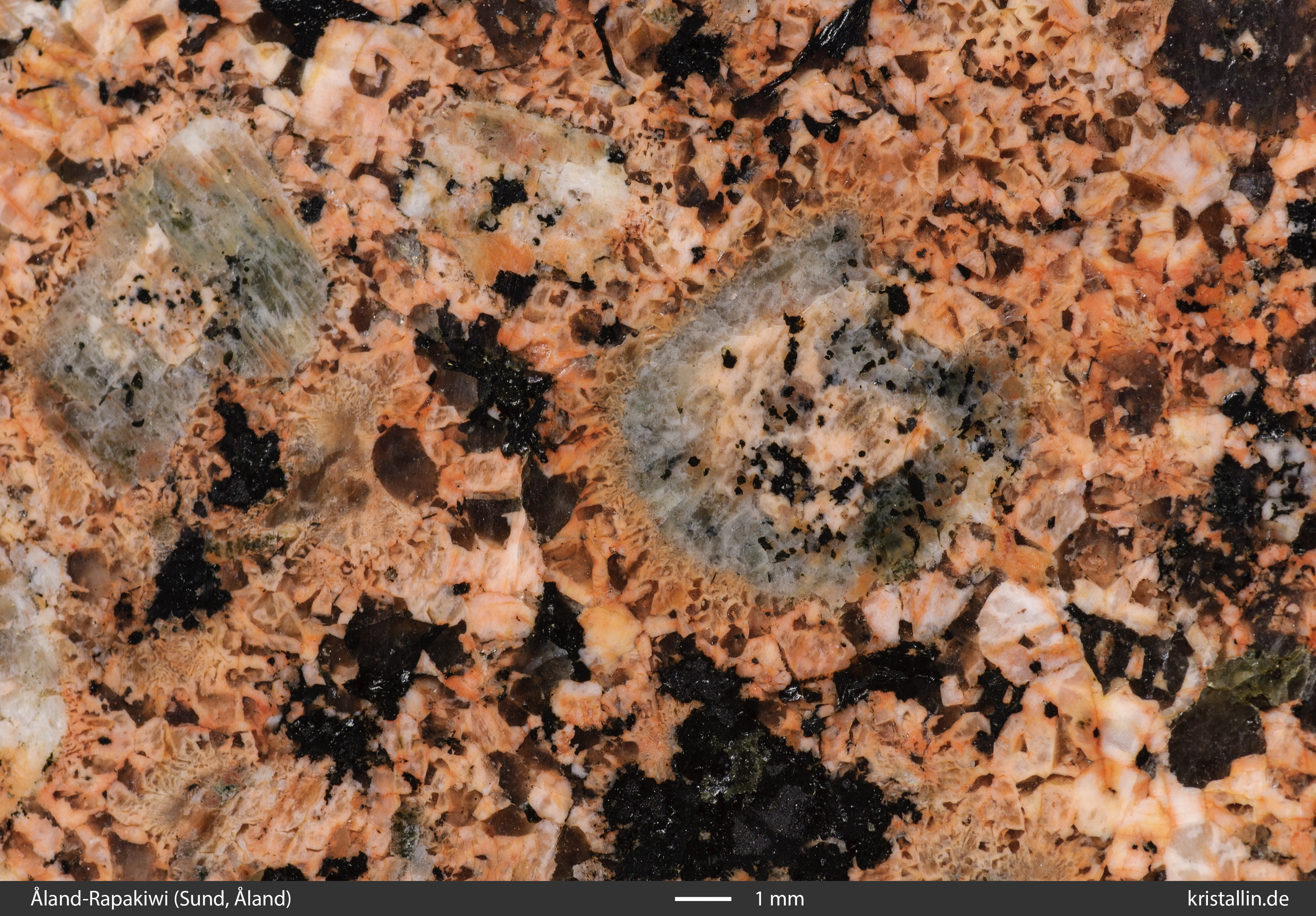 In manchen Rapakiwis haben die Ovoide keinen Saum. Diese Variante nennt man „Pyterlit“.