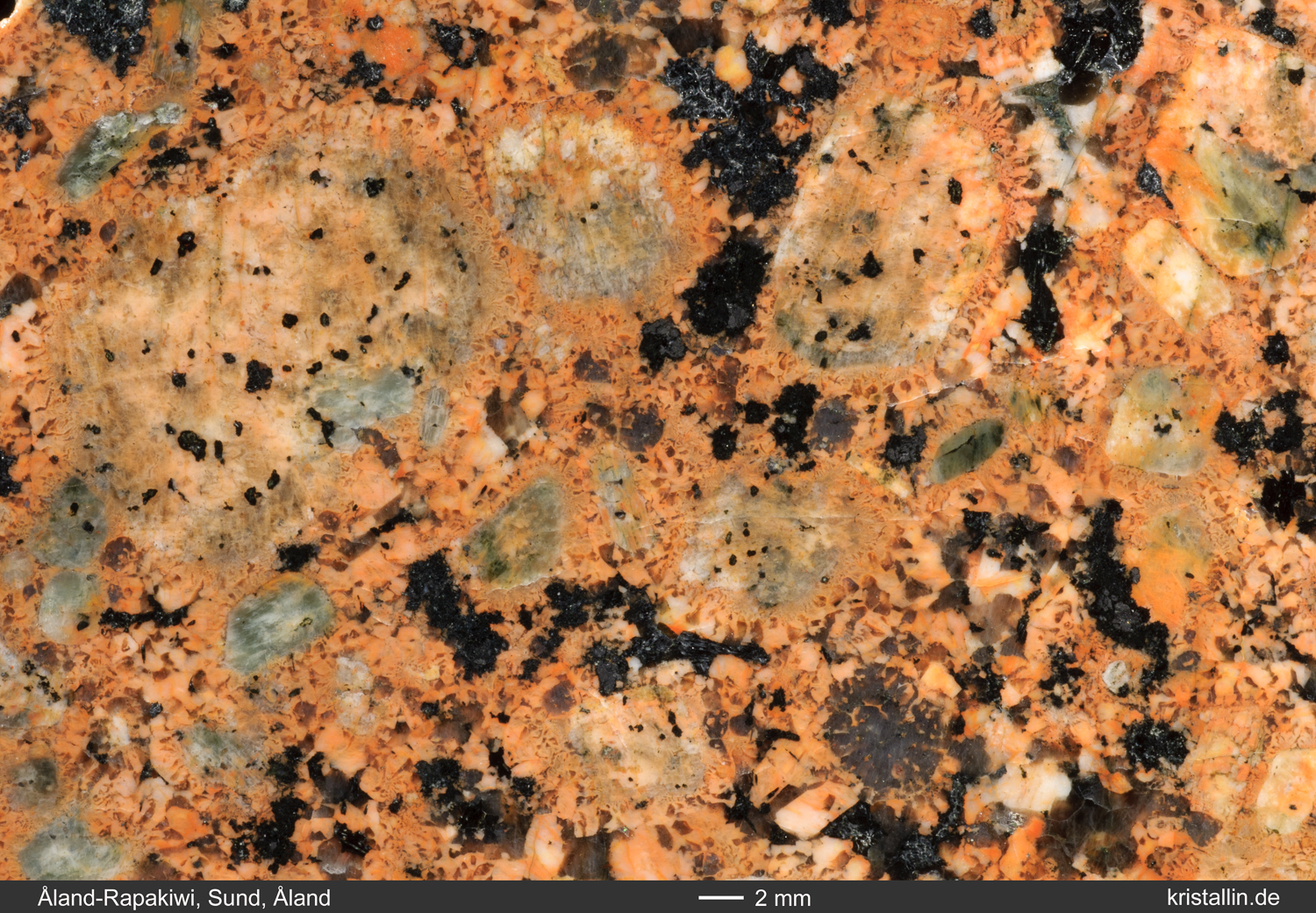 vor. Die Menge der runden Feldspäte im Åland-Rapakiwi schwankt zwischen