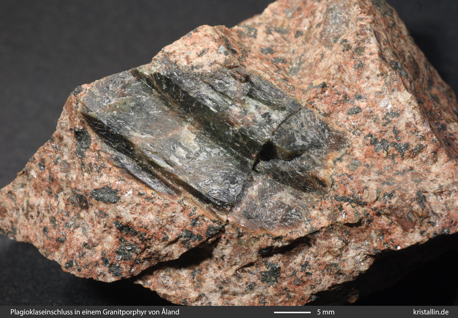 (14/36) Dieser graue Plagioklaseinschluss steckt im Granitporphyr aus dem Westhafen in Mariehamn, Åland.