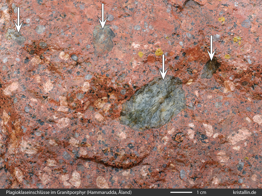 (17/36) Die Nahaufnahme zeigt den nassen Hammarudda-Quarzporphyr, der hier de facto ein Granitporphyr ist. In diesem kleinen Bildausschnitt gibt es gleich mehrere Plagioklaseinschlüsse. (unbeschriftetes Bild)