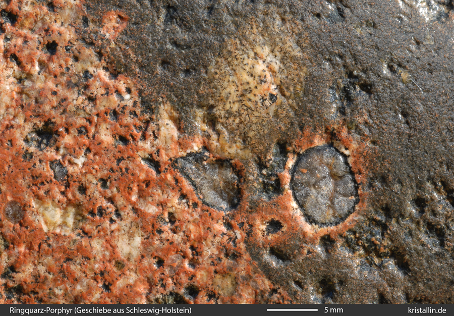 (25/36) Der Kontakt von Porphyr und Einschluss. Die beiden Quarze waren auf dem Weg nach rechts in den dunklen Xenolith.