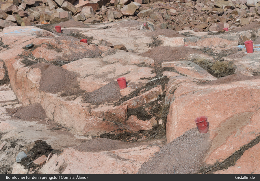 (10/14) Das Ganze aus der Nähe. Solche Baustellen sind ein Geschenk, wenn man eine Gesteinsprobe braucht. Hier gibt es genügend Material, alles ist frisch und anstehend und man kann sogar üben, ordentliche Handstücke herzustellen. Natürlich hält man ausreichend Abstand zu den Bohrlöchern und allem anderen, was dort errichtet wurde. Wenn gearbeitet wird, muss man unbedingt fragen, bevor man dort herumläuft.