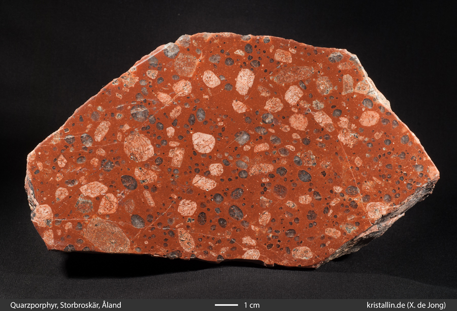 (33/100) Das ist einer der Quarzporphyre von Storbroskär als geschnittene Probe. (Die ausführliche Beschreibung finden Sie hier.)