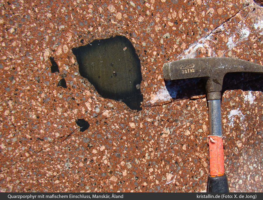 (48/100) Der vom Eis polierte Quarzporphyr zeigt alle Einzelheiten einschließlich der dunklen Fremdgesteinseinschlüsse. (Das Weiße sind Hinterlassenschaften der Vögel.)