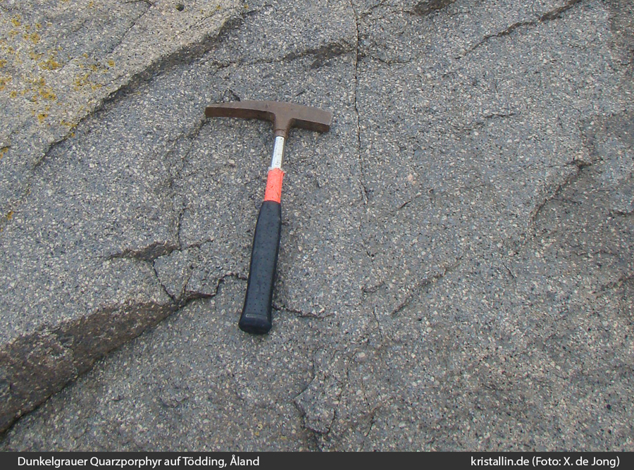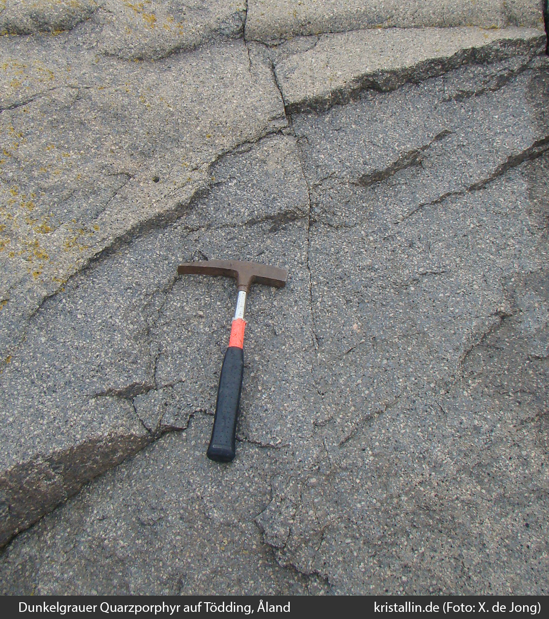 (26/99) Ein Stück weiter sieht der Quarzporphyr komplett anders aus. Nahaufnahmen dieses grauen Porphyrs finden Sie in der Beschreibung der Quarzporphyre.