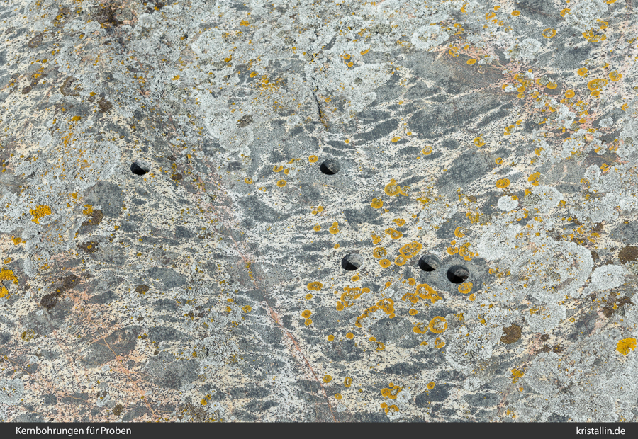 (17/28) Diese Stelle interessiert auch die finnischen Geologen. Die Bohrlöcher dienten der Entnahme von Proben.