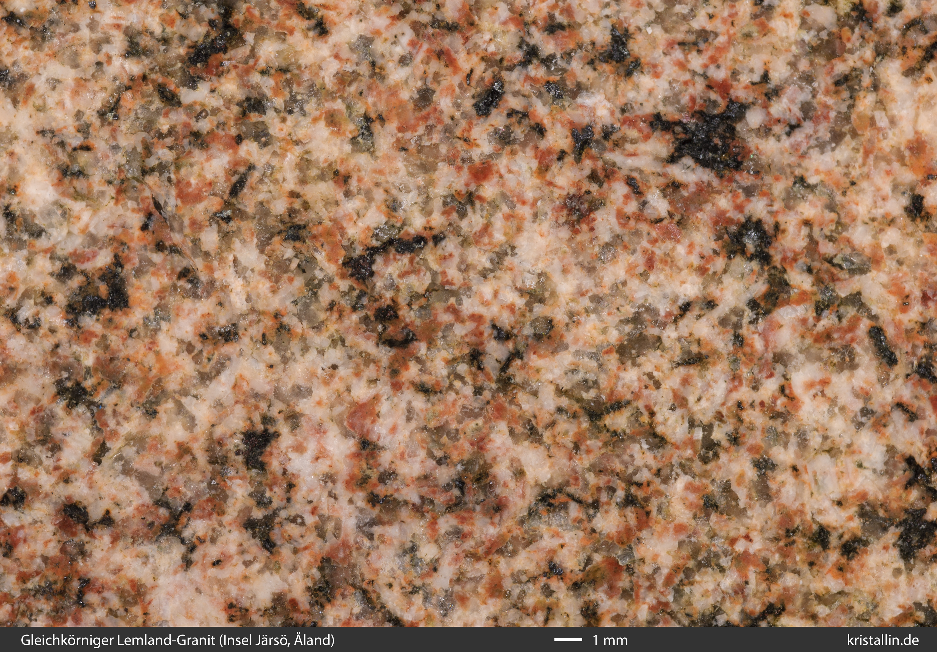 Die dunklen Minerale im Lemland-Granit sind Biotit und Chlorit, die weniger als 10 % des Volumens ausmachen.