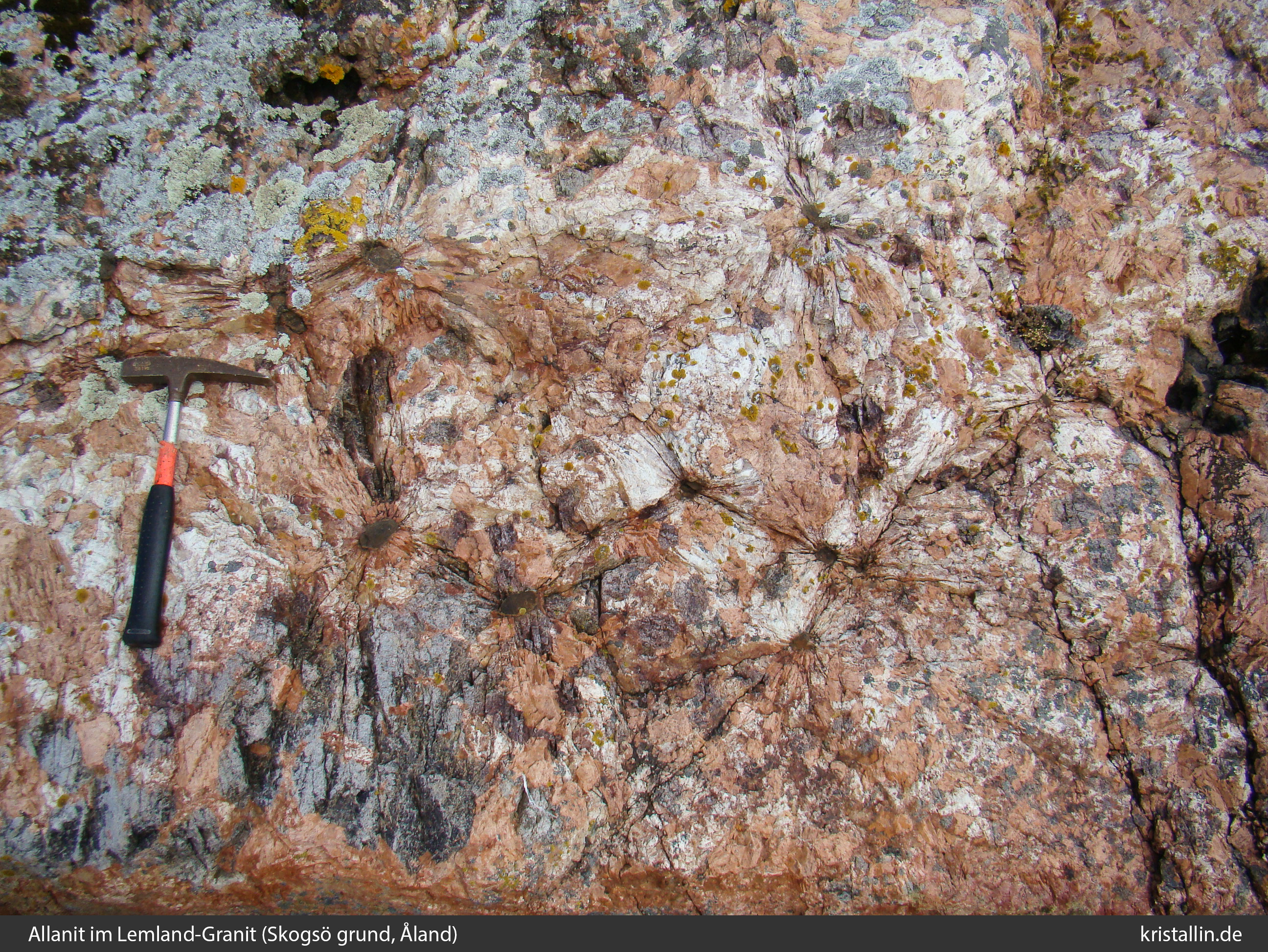 Pegmatite aus der Spätphase des Lemland-Granits findet man überall auf den Inseln, aber in der Regel ohne Allanit.