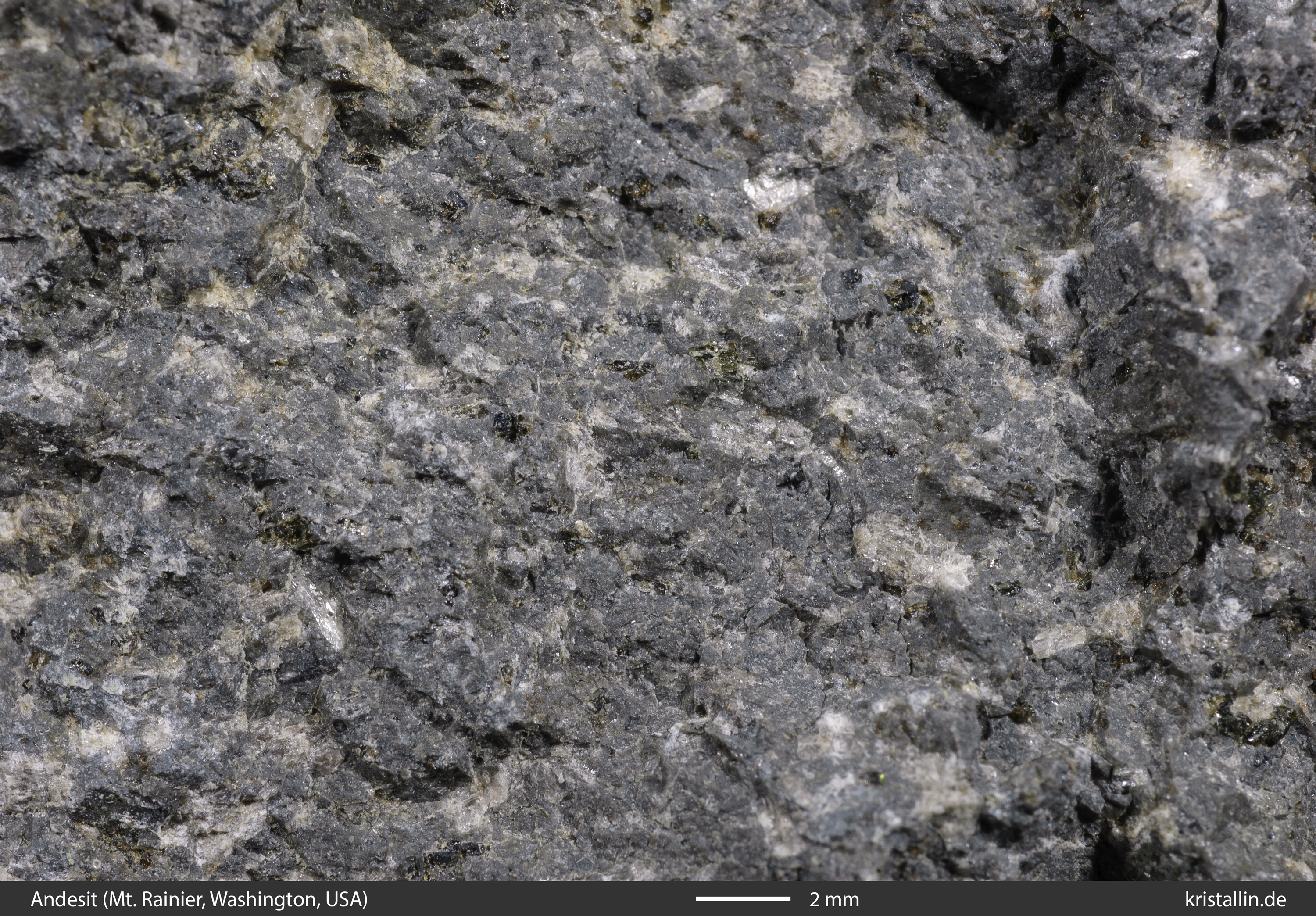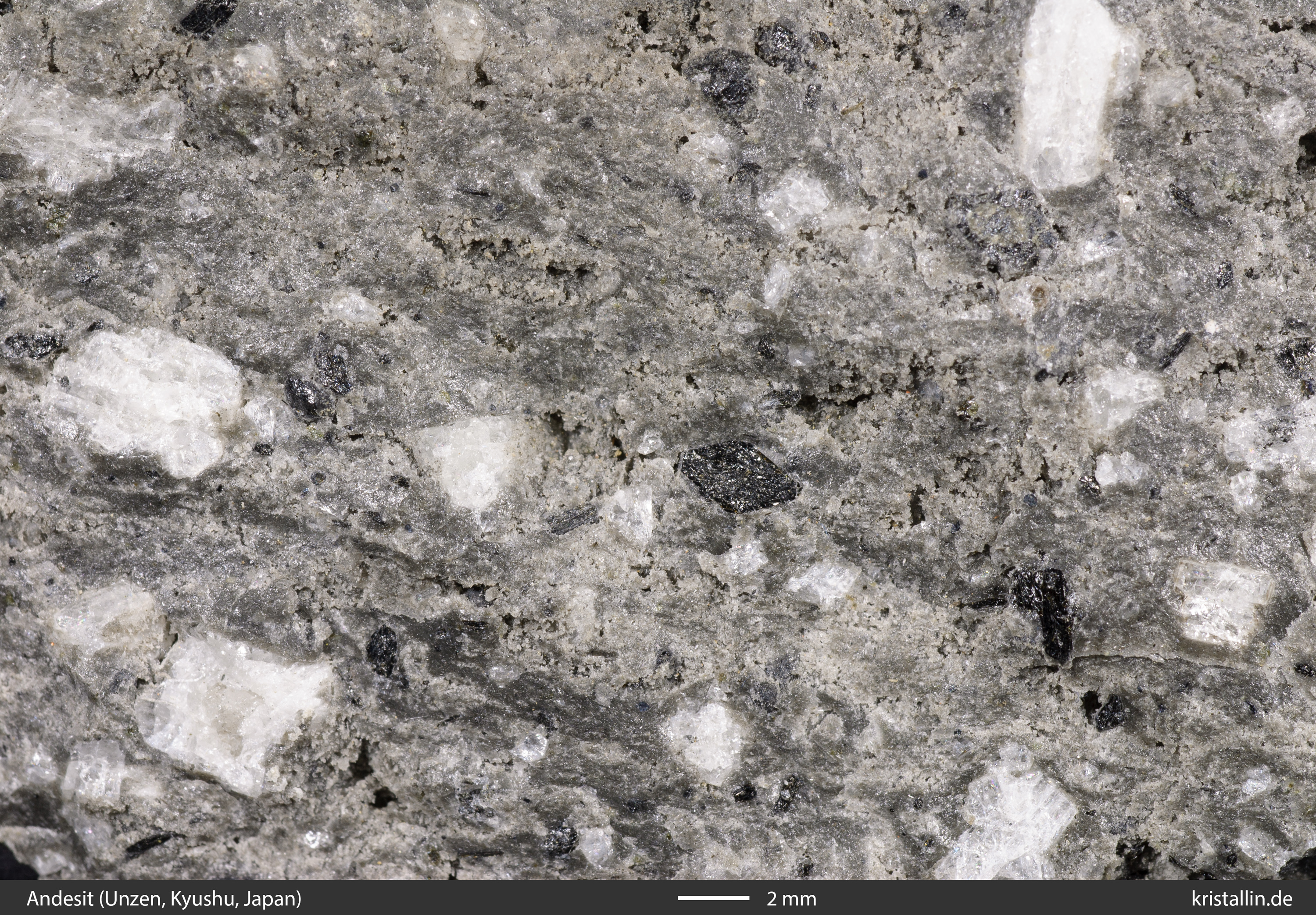 Neben viel Plagioklas können Andesite bis zu 10 % Foide oder bis zu 20 % Quarz enthalten. Beide stecken unsichtbar in der Grundmasse. Ein Andesitmagma, das sich in der Tiefe langsam abkühlt, wird zu Diorit.