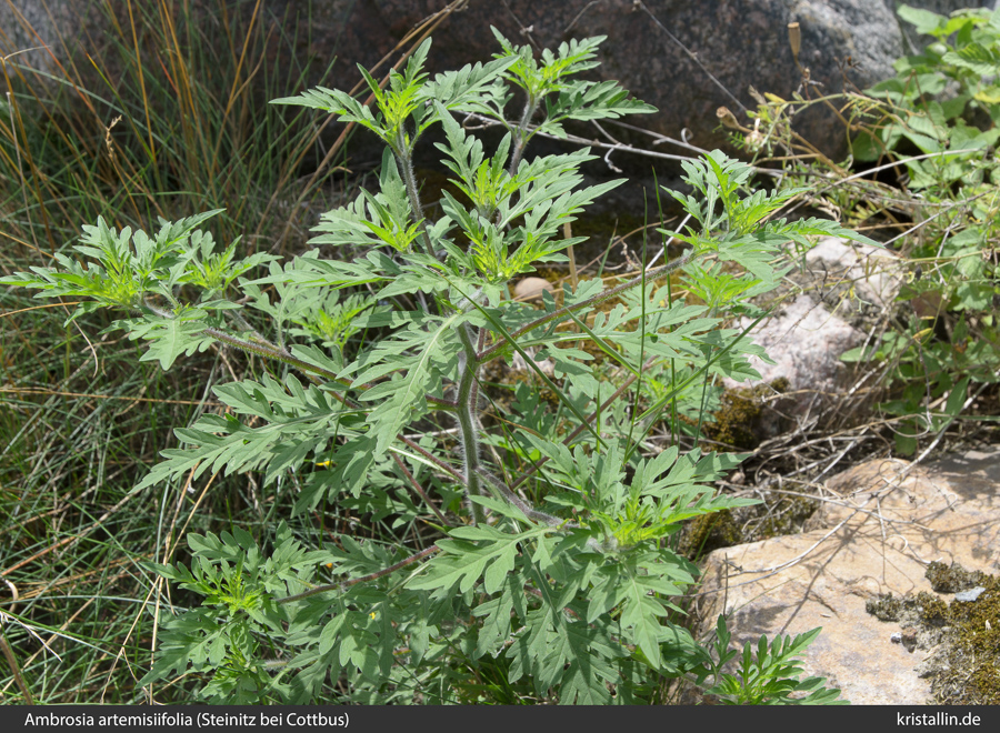 (47/47) A side trip into botany: This is ambrosia artemisiifolia, the enemy of all pollen allergy sufferers. The field near Steinitz was full of these plants in 2015, but they were not yet flowering at that time. The flowering begins, it becomes really uncomfortable.