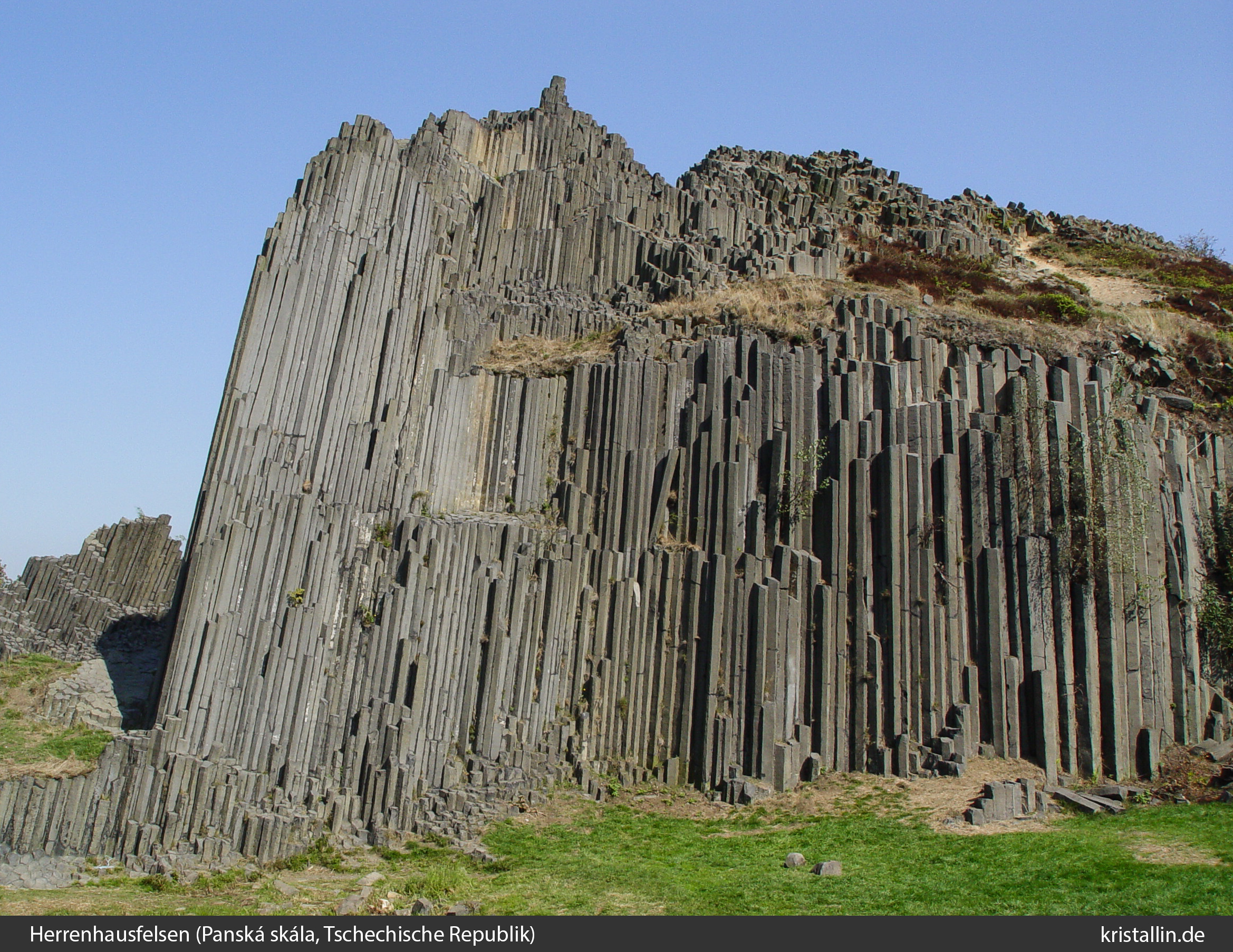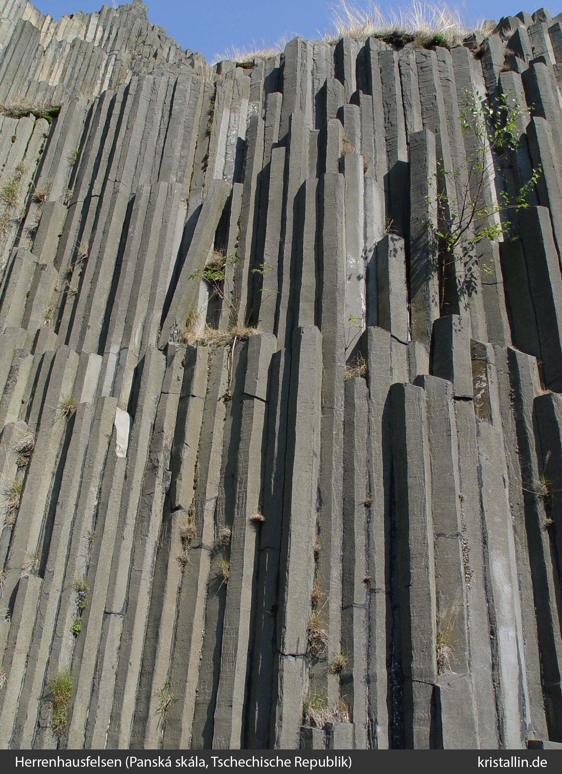 Wenn eine Gesteinsschmelze kalt wird, schrumpft sie und bildet Risse. Bei einem feinkörnigen und homogenen Gestein kann sich ein ganz gleichmäßiges Rissmuster bilden, das sich in die Tiefe fortsetzt und dann Säulen bildet. Das hat nichts mit Kristallen zu tun, es handelt sich nur um Schrumpfrisse. Solche Säulen bedeuten auch nicht zwangsläufig Basalt. Rhyolithe, Dazite und Phonolithe kommen ebenso in Säulen vor, wenn auch viel seltener. Ist das Gestein aus der Nähe grau oder schwarz und feinkörnig, wird es sich um einen Basalt im weiteren Sinne handeln, also ein „basaltisches Gestein“. Die Säulen haben Durchmesser von wenigen Zentimetern bis zu über einem Meter.