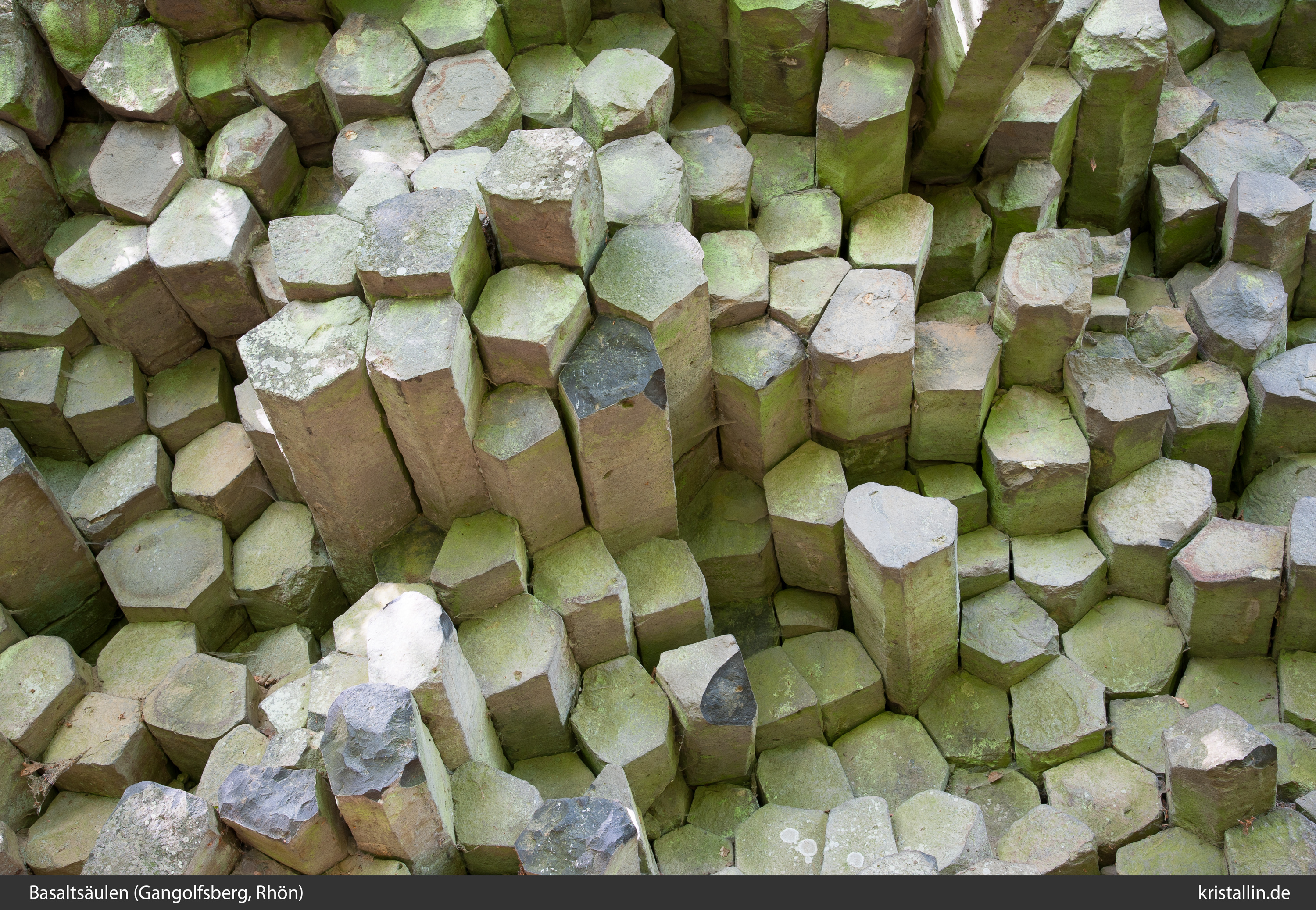 Auch am Gangolfsberg in Hessen gibt es ausgesprochen schöne Säulen. Sie wurden bei der Hebung der Mittelgebirge schräg gestellt und lassen keinen Rückschluss auf die Richtung der Abkühlung zu.