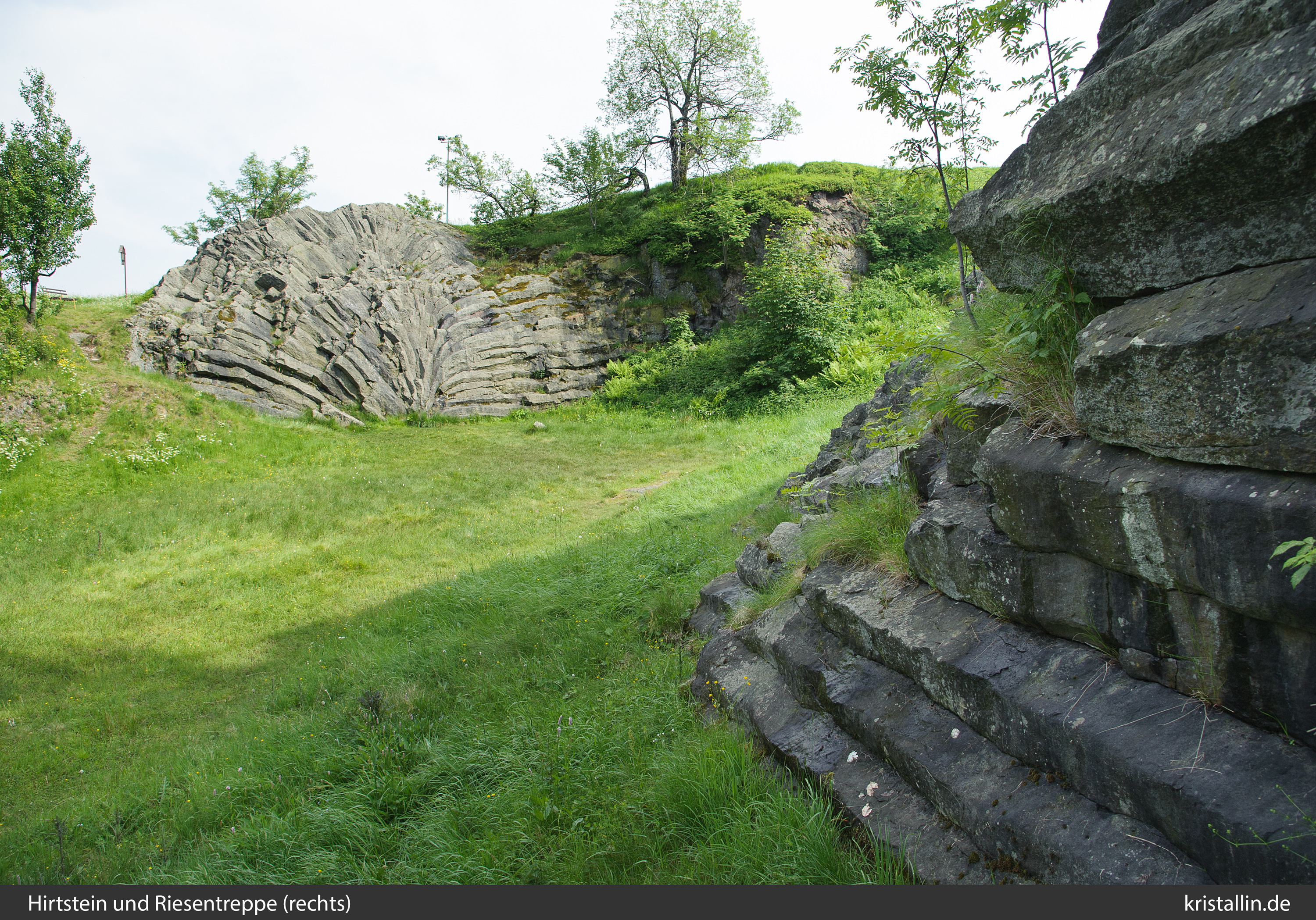 Am Hirtstein befindet sich direkt neben dem Meiler die sogenannte „Riesentreppe“ mit waagerecht liegenden Säulen. Das zeigt, dass die Schmelze direkt neben dem Meiler einen senkrechten Gang nach oben bildete.