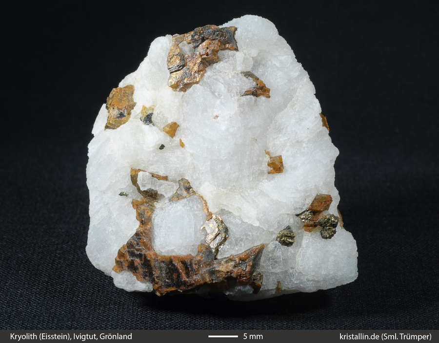 (1/6) Die Probe besteht aus dem weißen Kryolith und goldbraunem Siderit.