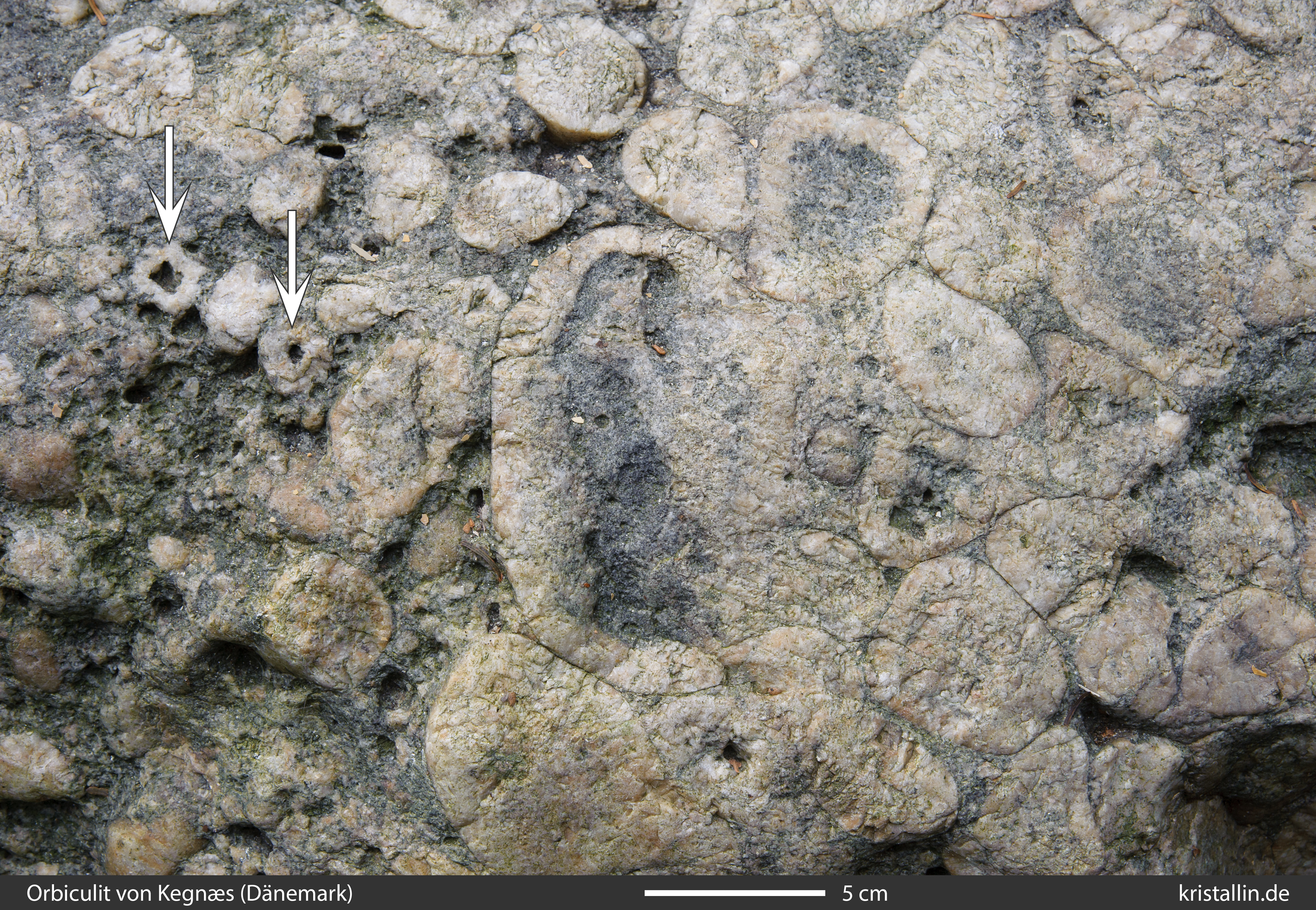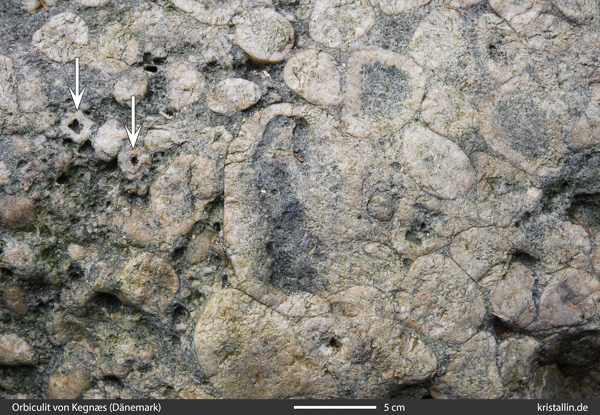 Wegen der vielen Orbicule lässt sich beim Fund von Kegnæs ein Durchschnitt von etwa 5 cm gut abschätzen.