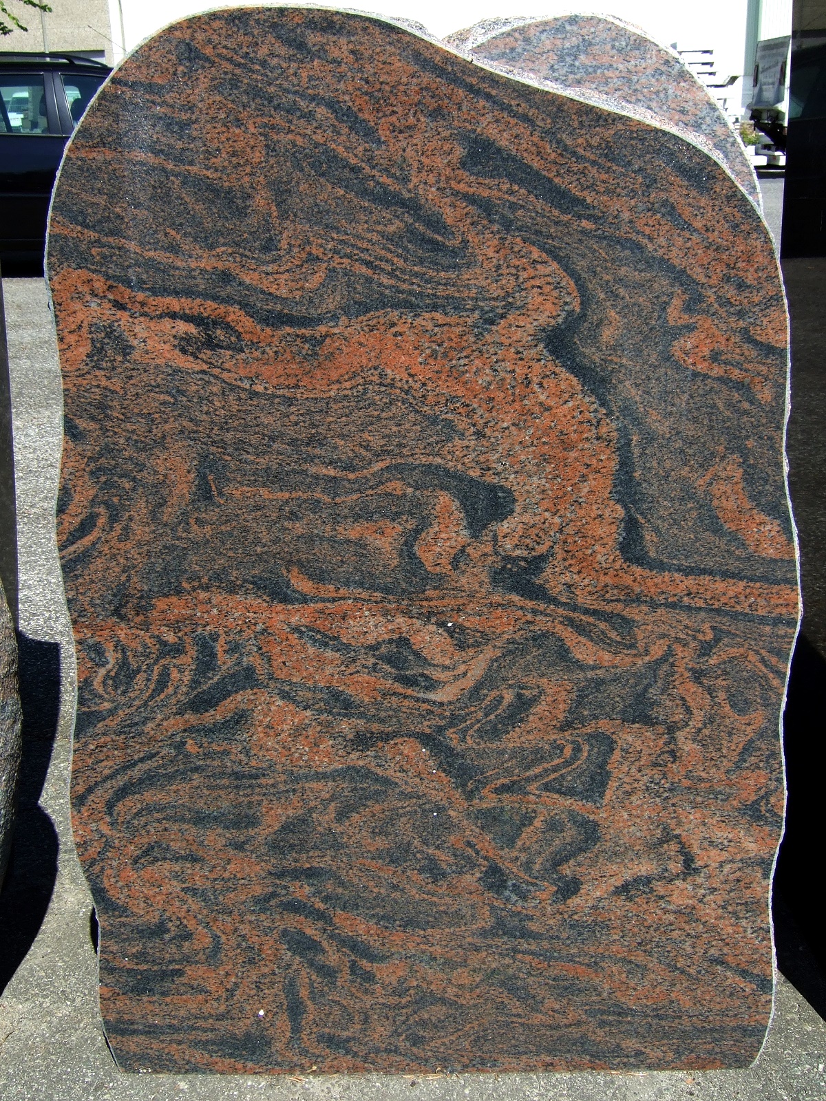Links: Grabsteinrohling, südwestschwedischer Migmatit, etwa 1,20