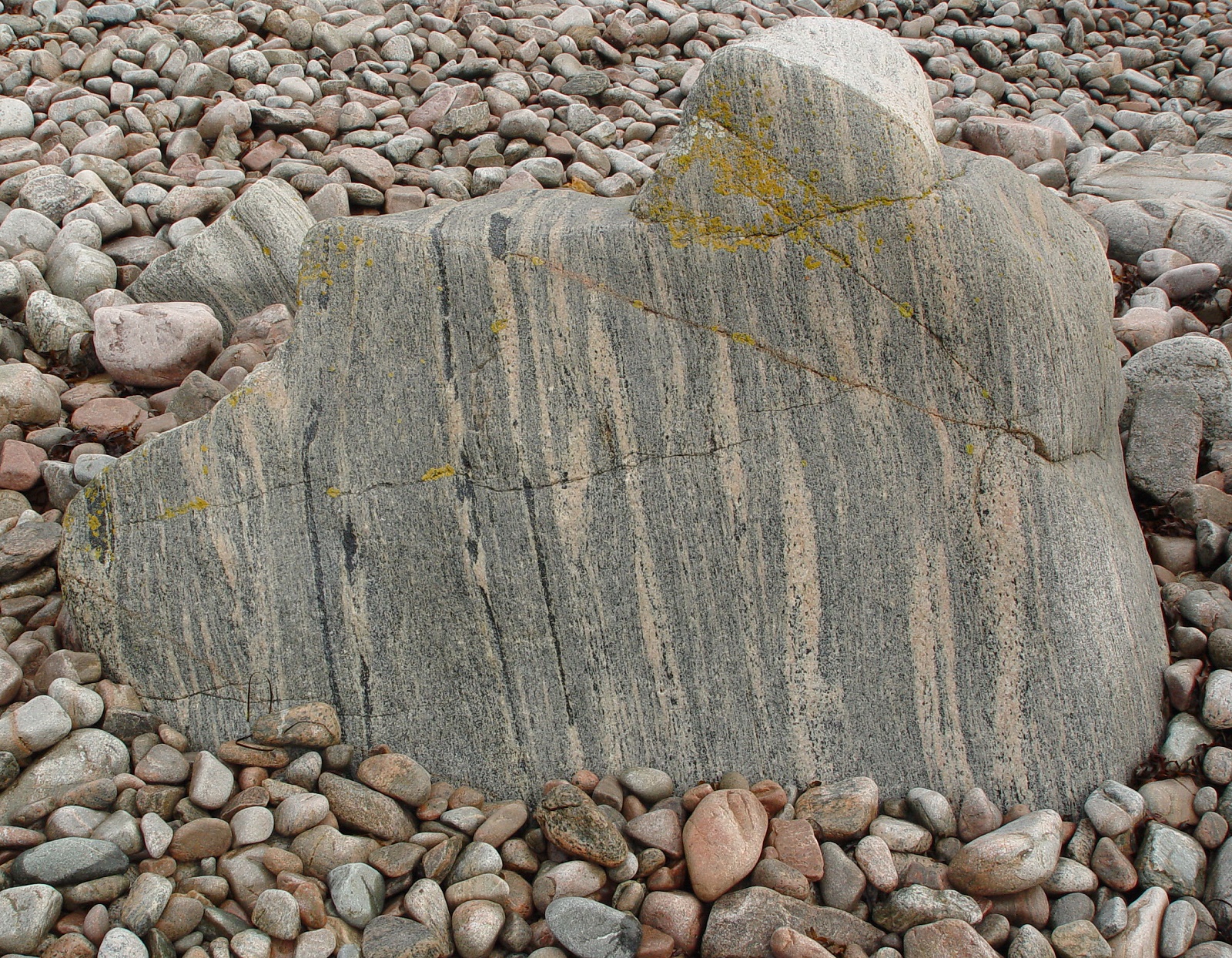 Sie finden Migmatite überall im Geschiebe. Häufig