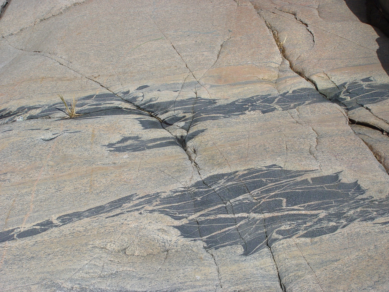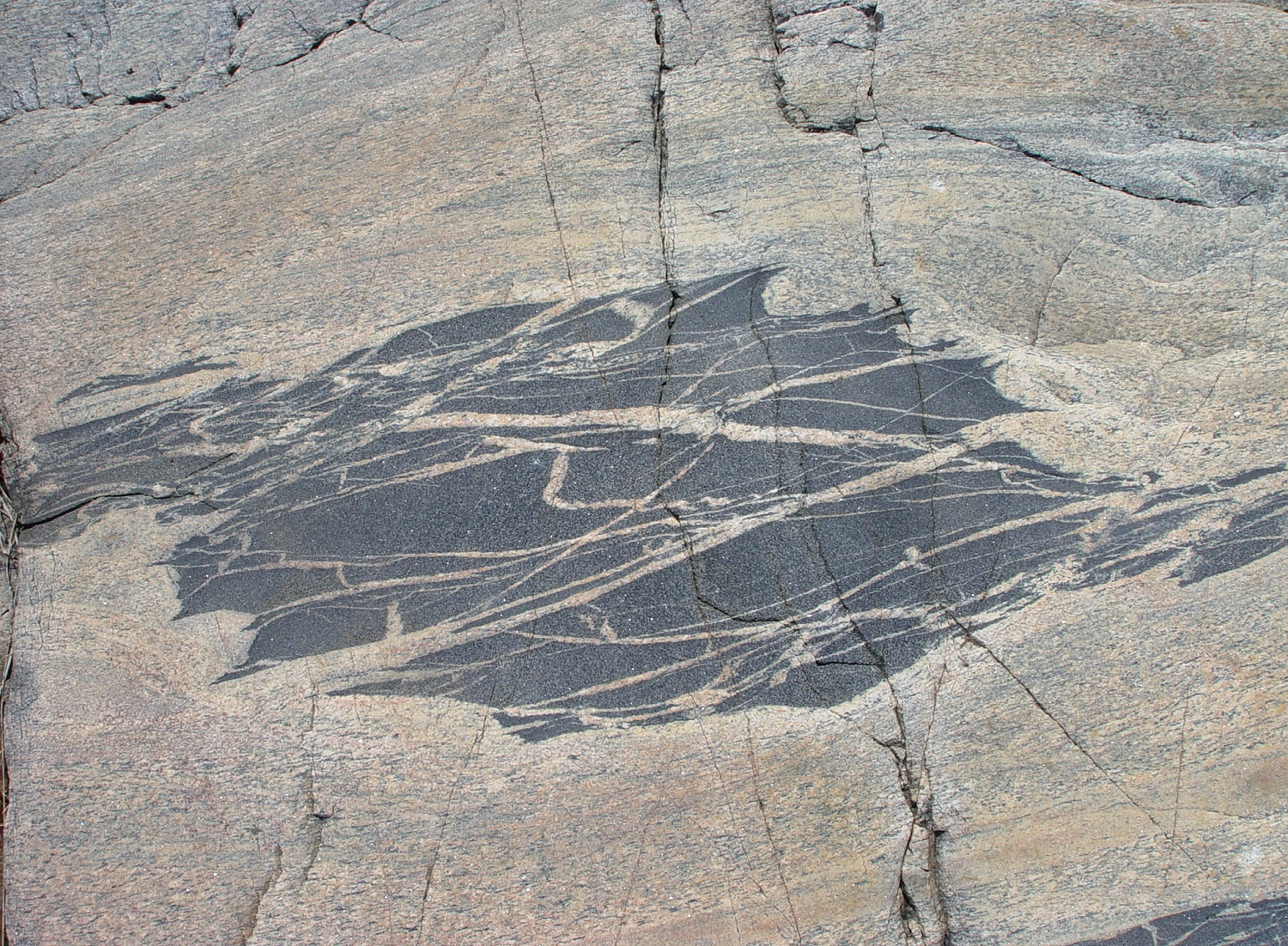 Das abgebildete Gestein ist ein amphibolitischer Migmatit.
