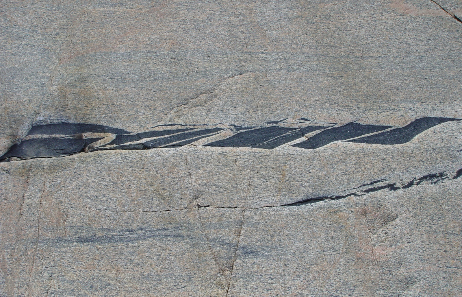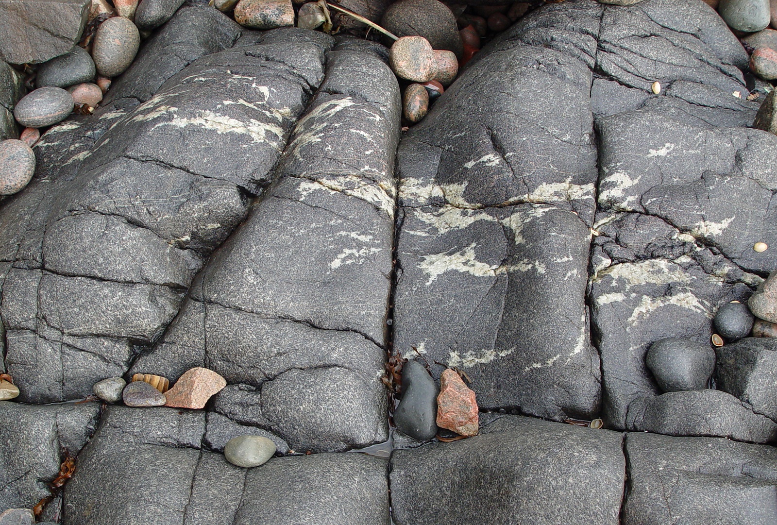 Beachten Sie die Ränder des dunklen Gesteins. Die von