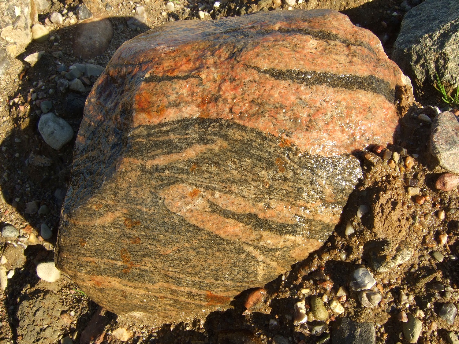 rötlichgrauen Migmatit, fotografiert in der Kiesgrube in Damsdorf,