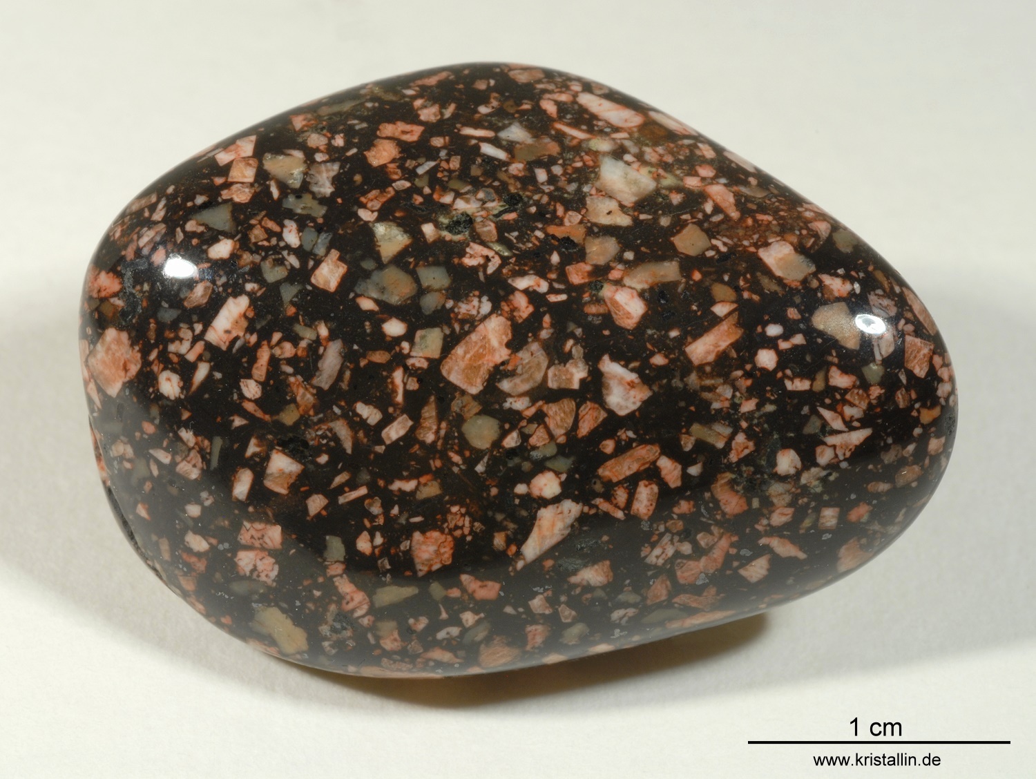 Im polierten Zustand sieht das Gestein so aus wie unten:
