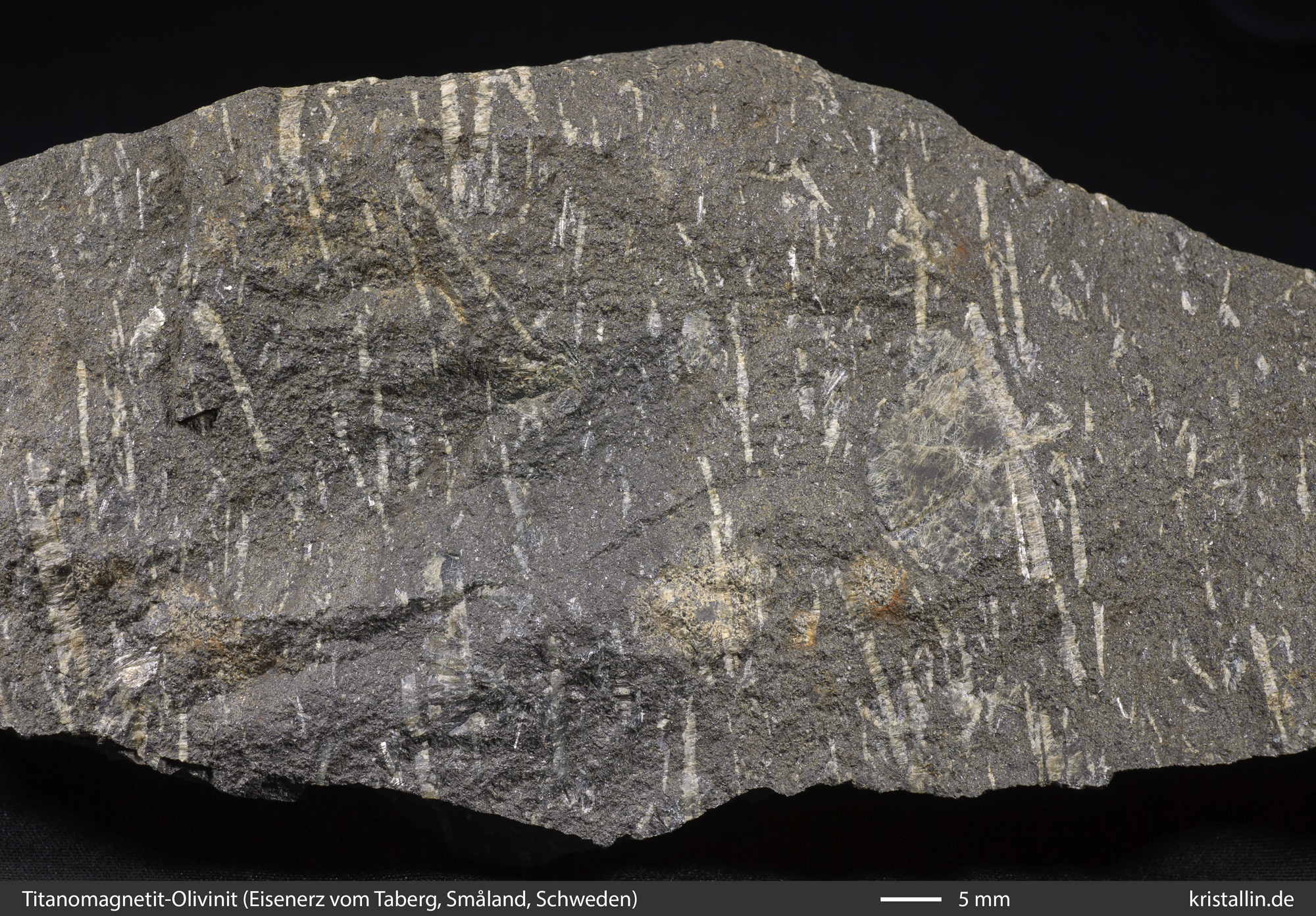(5/15) Ein Teil des Erzes enthält Plagioklas als Einsprenglinge. Wie viel, das ist ganz unterschiedlich und so gibt es auch Stücke mit weniger Plagioklas.