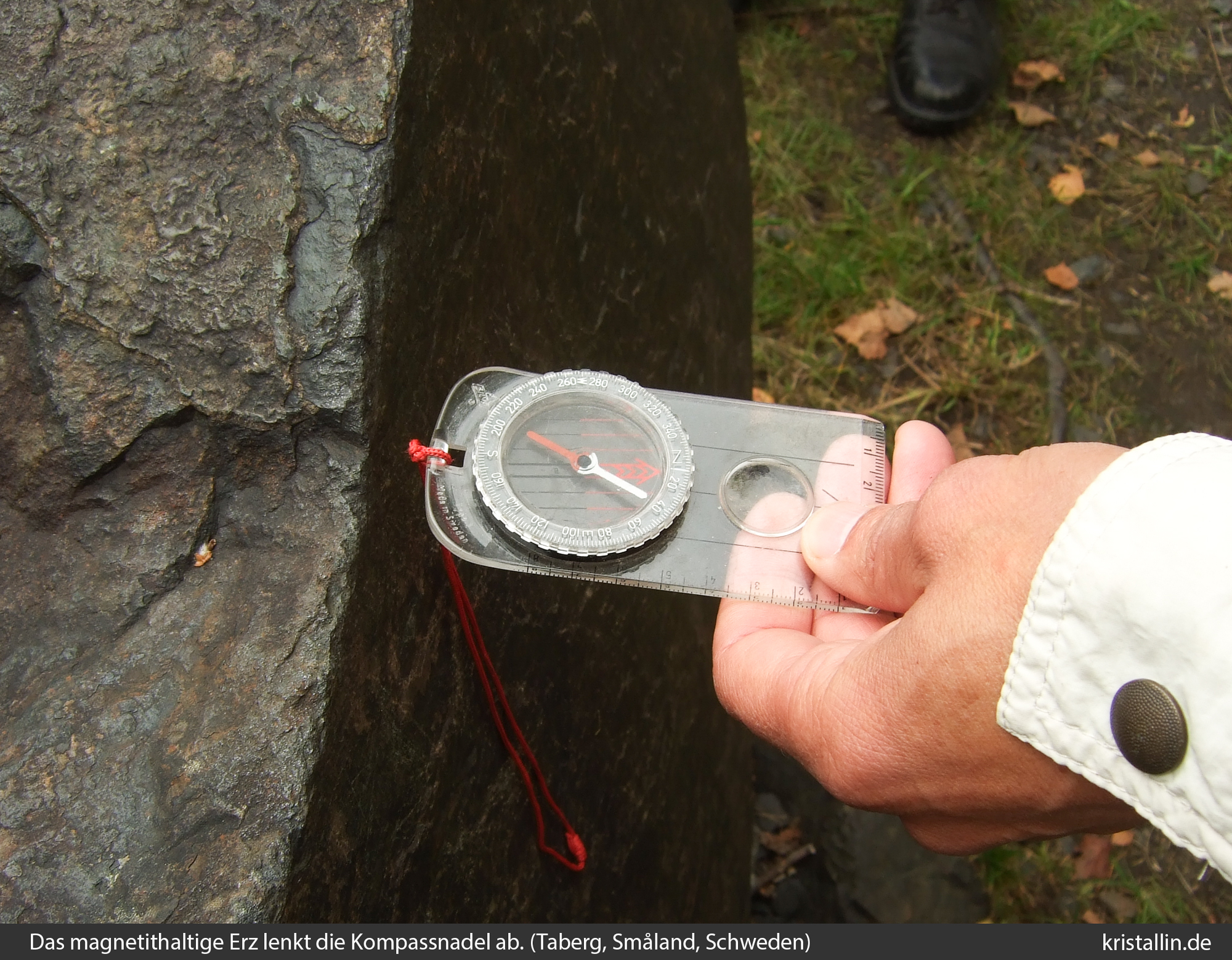 (12/15) Je nach Position des Kompass’ zeigt die Nadel in verschiedene Richtungen. Hier ist das rote Ende der Kompassnadel oben links.