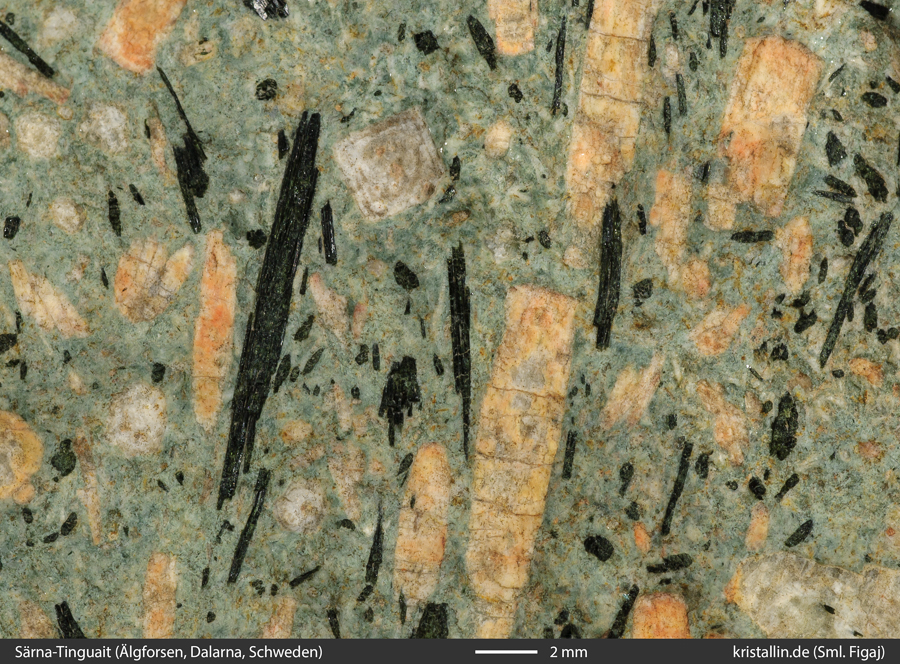 (4/30) Die Nahaufnahme dazu. Der viereckige Kristall oben links könnte Nephelin sein.