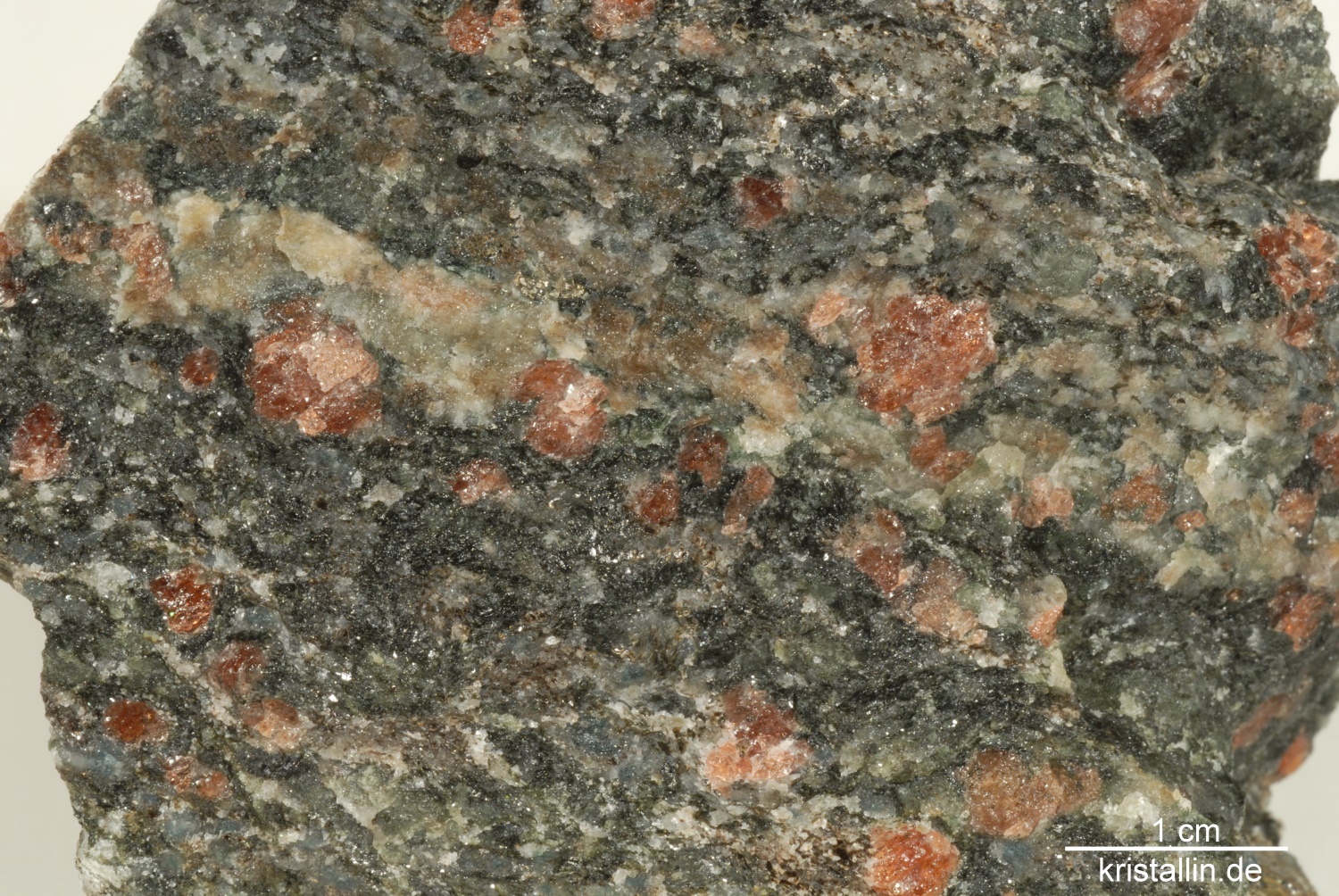 Der Granat im Eklogit kann idiomorph sein, muß es aber nicht. Granate sind