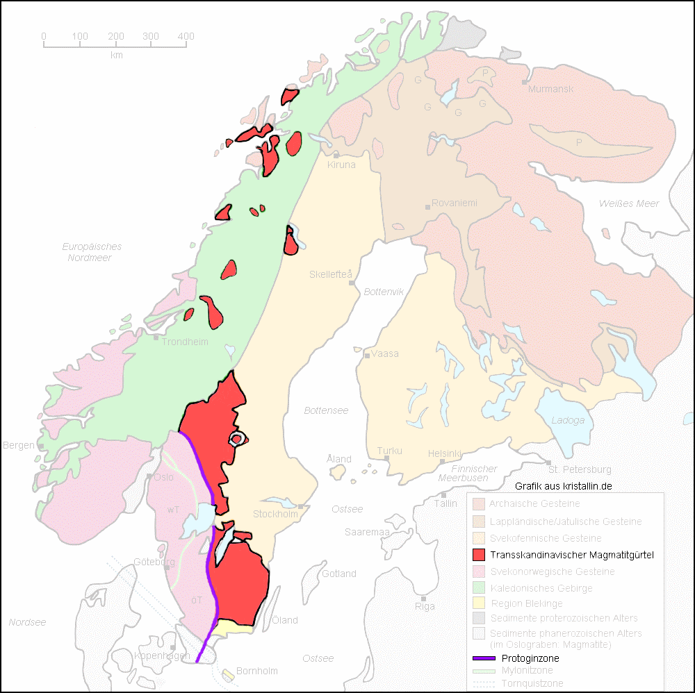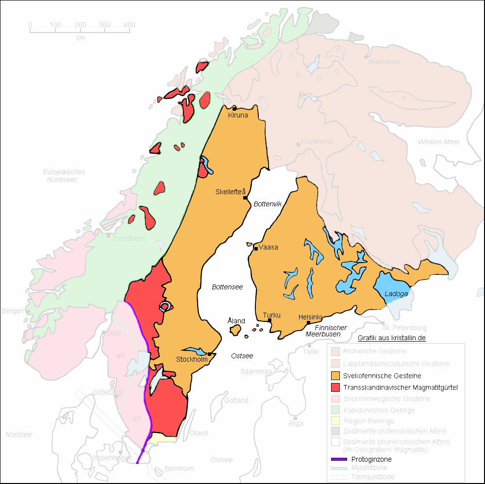 Gesteine aus diesem jüngsten Teil des Baltischen Schildes sind zum