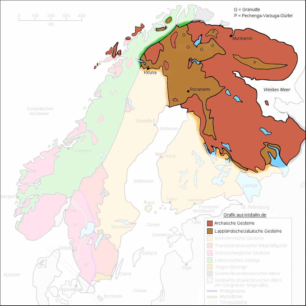 Die ältesten Gebiete liegen im Norden auf der Halbinsel Kola. Die dortigen