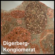 2.) Gesteine mit Mineralen, von denen mindestens eines rötlich, braun oder gelblich ist. Mit sichtbarem Quarz: