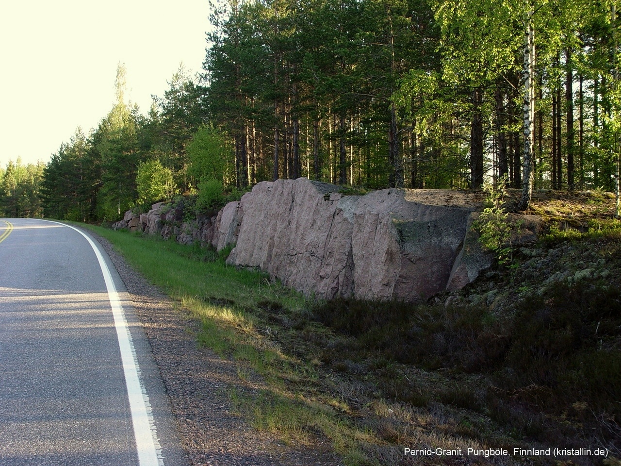 Anstehender Perniö-Granit im Straßenaufschluß.