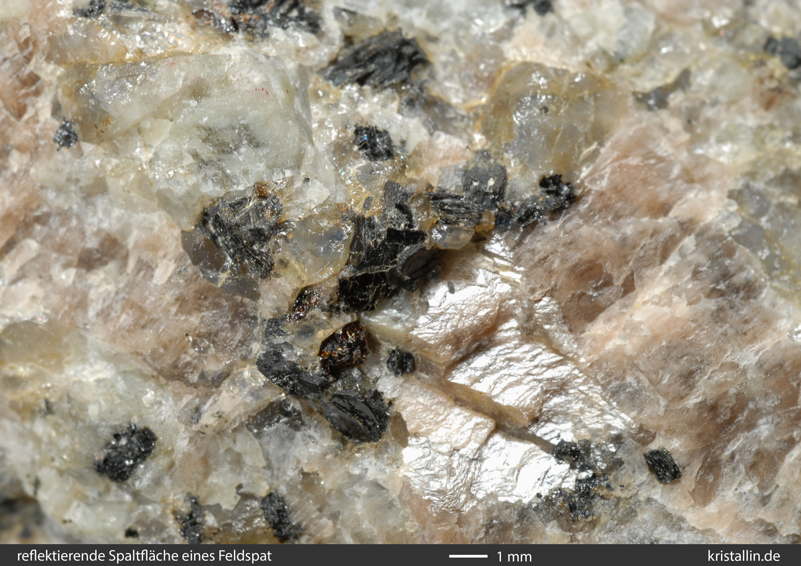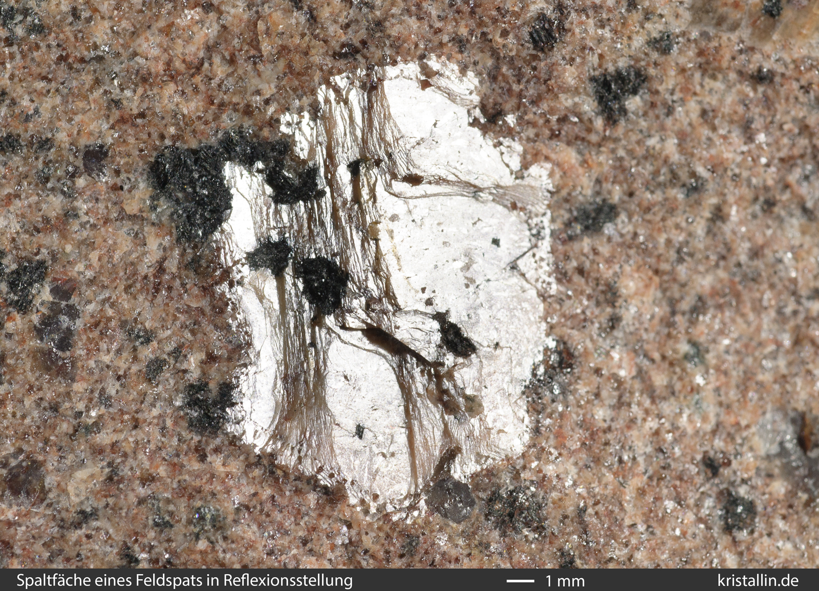 Bildern ist Feldspat. Die Spiegelungen der Spaltflächen erscheinen nur, wenn