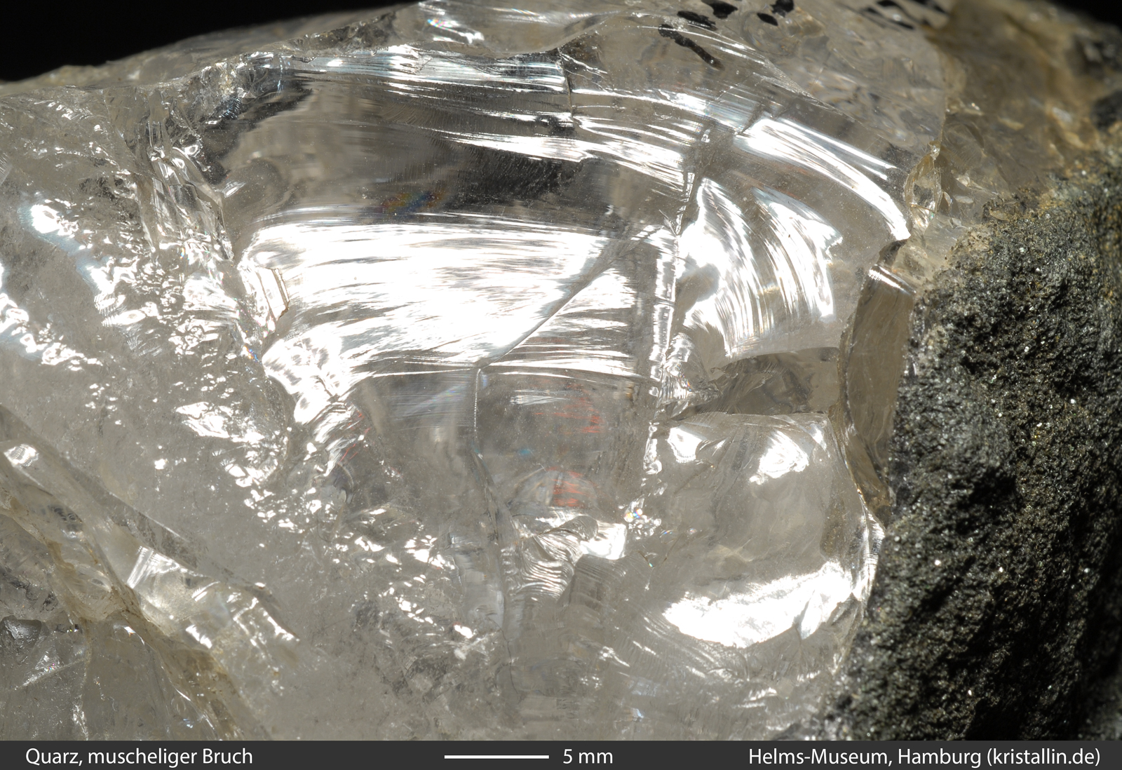 Zerbricht man einen Quarzkristall, entsteht der typisch