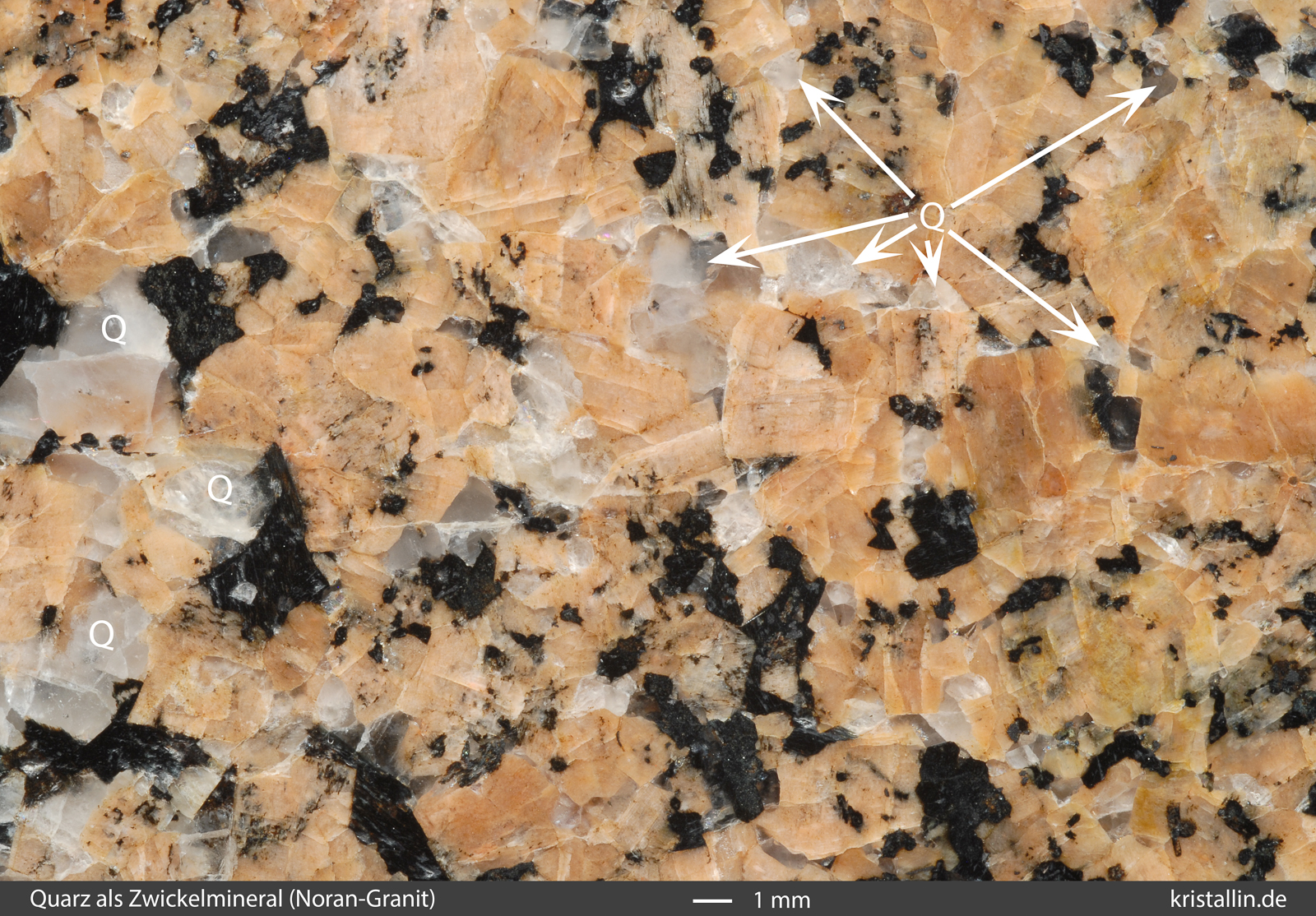 Hier sind die weißen Quarze (Q) in den Zwickeln