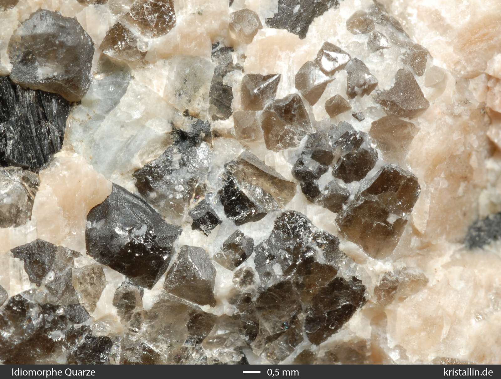 die Quarzkristalle vor den Feldspäten. Dann entstehen Quarze mit kantigen