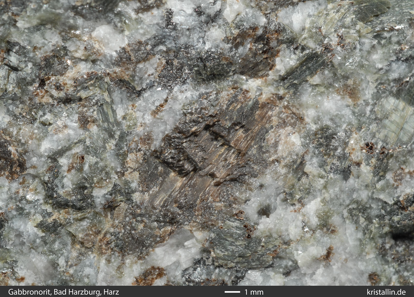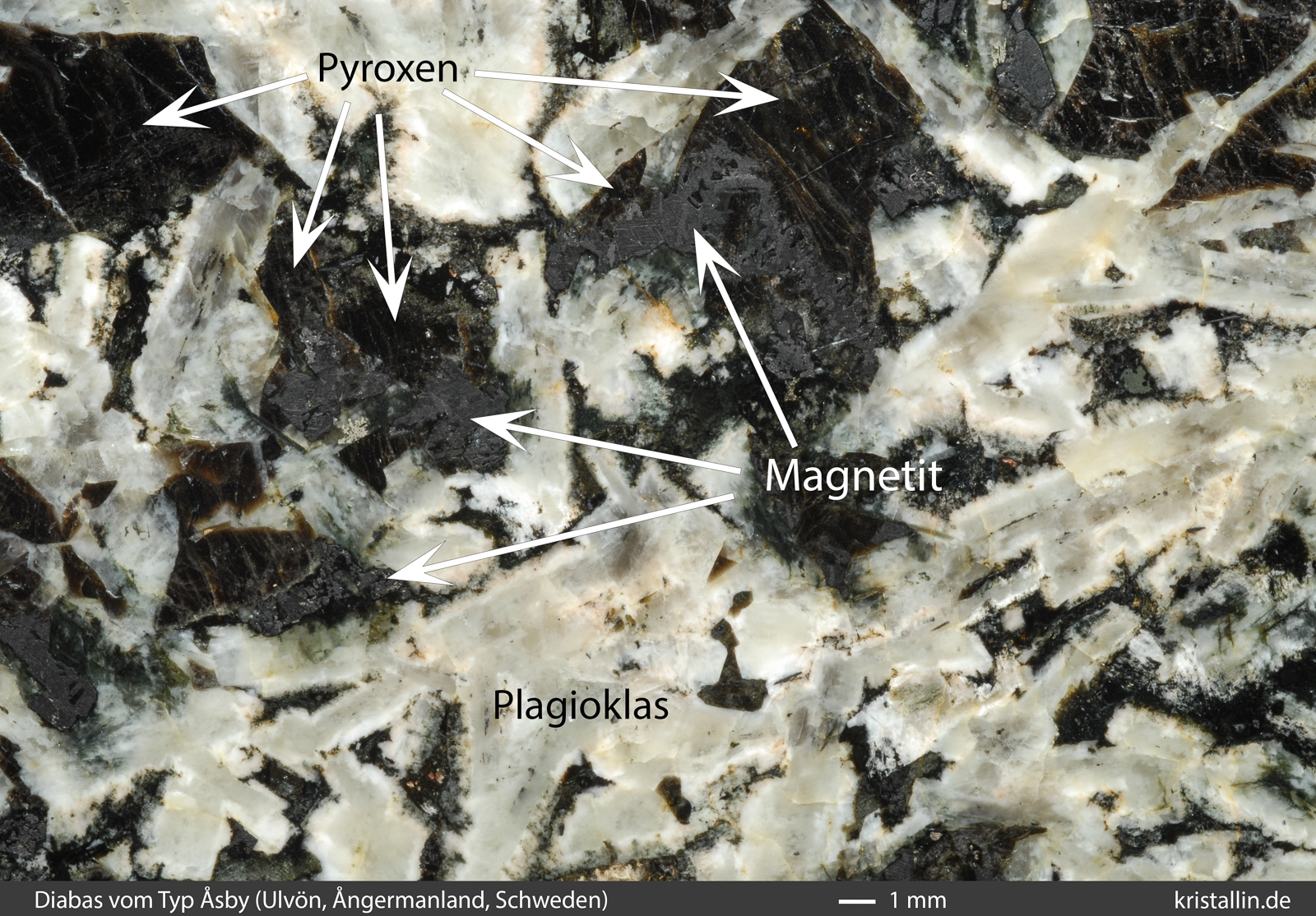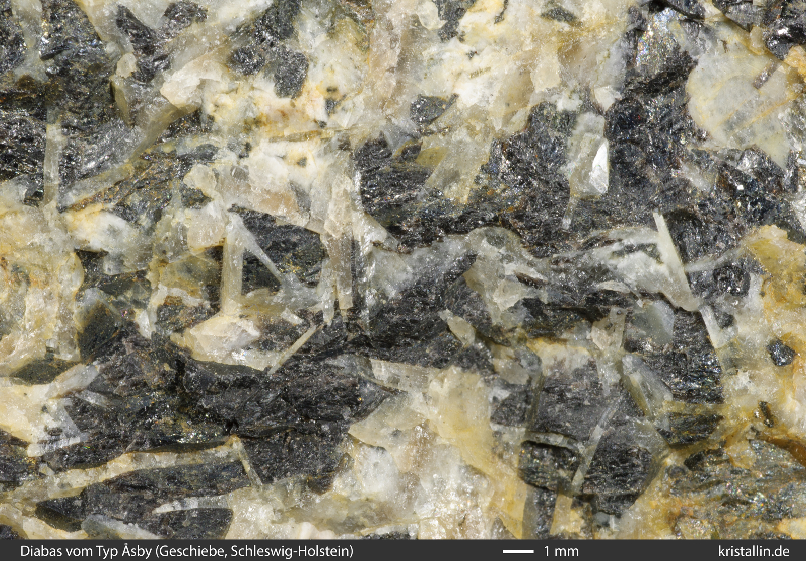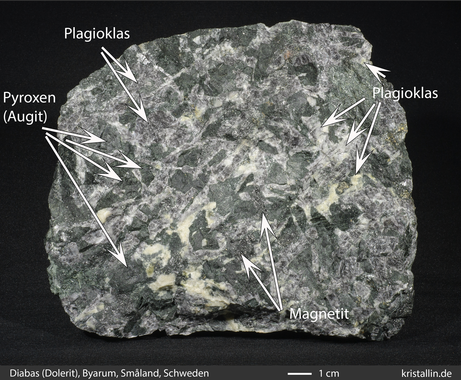 sind Gabbros und Diabase (= Dolerite) identisch. Beides sind schwarz-weiße