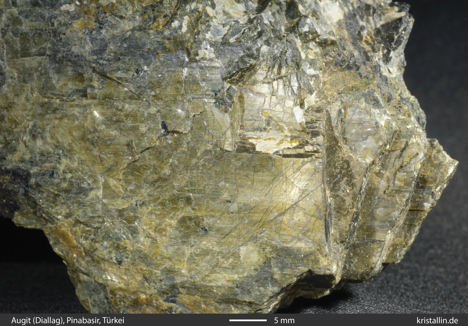 Das ist Augit in der Ausbildung „Diallag“. Diallag ist kein spezielles