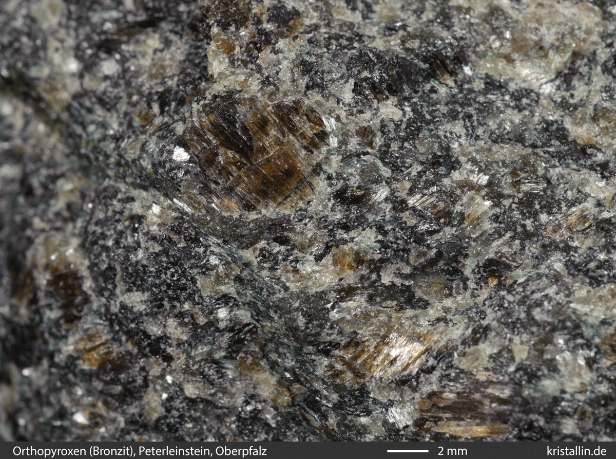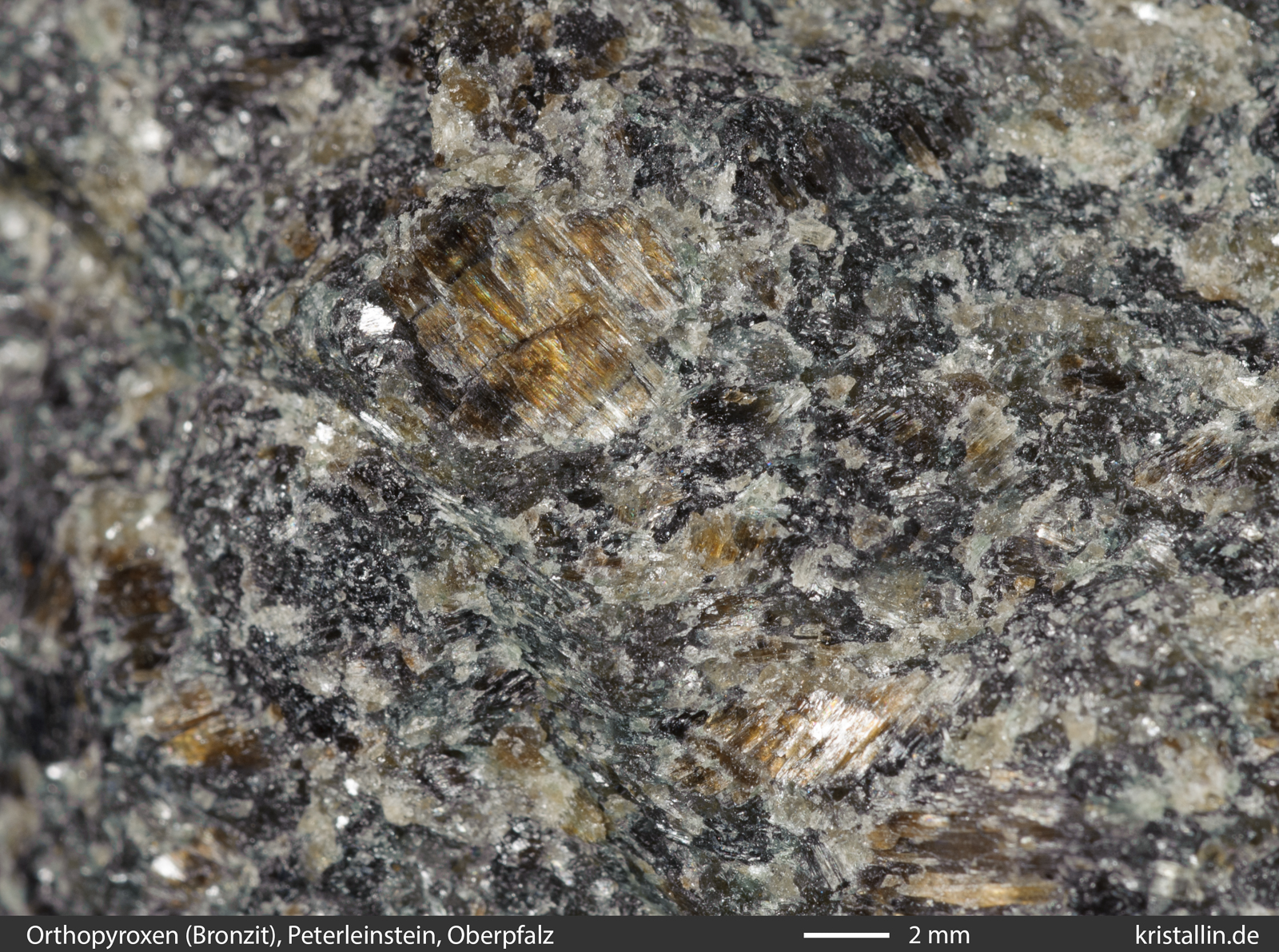 es sich um Orthopyroxen handeln. Dieser Glanz wird durch mikroskopisch feine