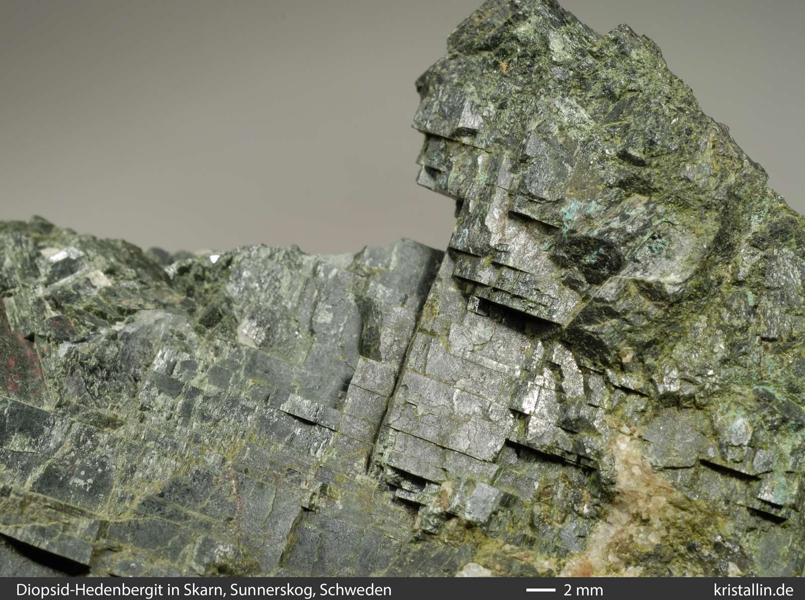 enthalten. Sie bilden eine Mischkristallreihe aus dem Magnesiumpyroxen