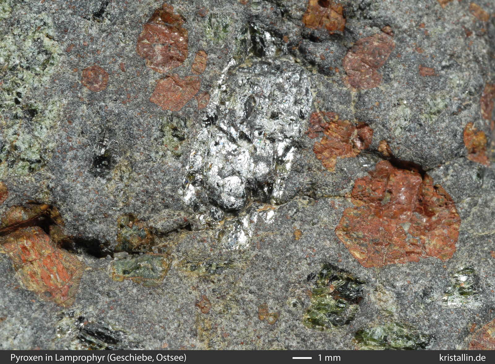 erkennbar ist. Dazu kommt sein metallischer Glanz, den die Pyroxene in