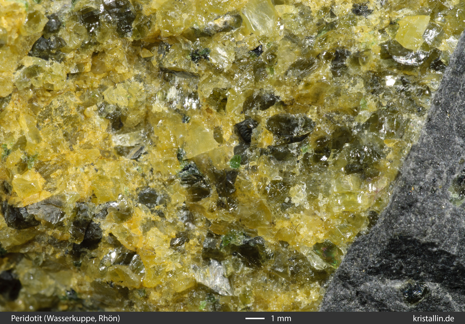 folgende Peridotit: Hier hat der Olivin eine frische grünliche Farbe, von