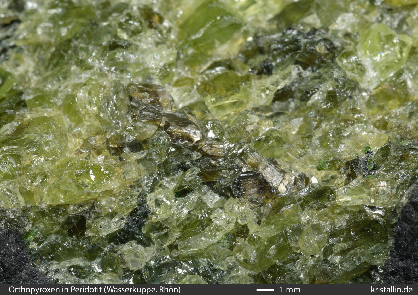 gehört. Zum Anderen findet man häufig Orthopyroxen, meist ist das Bronzit (Enstatit).