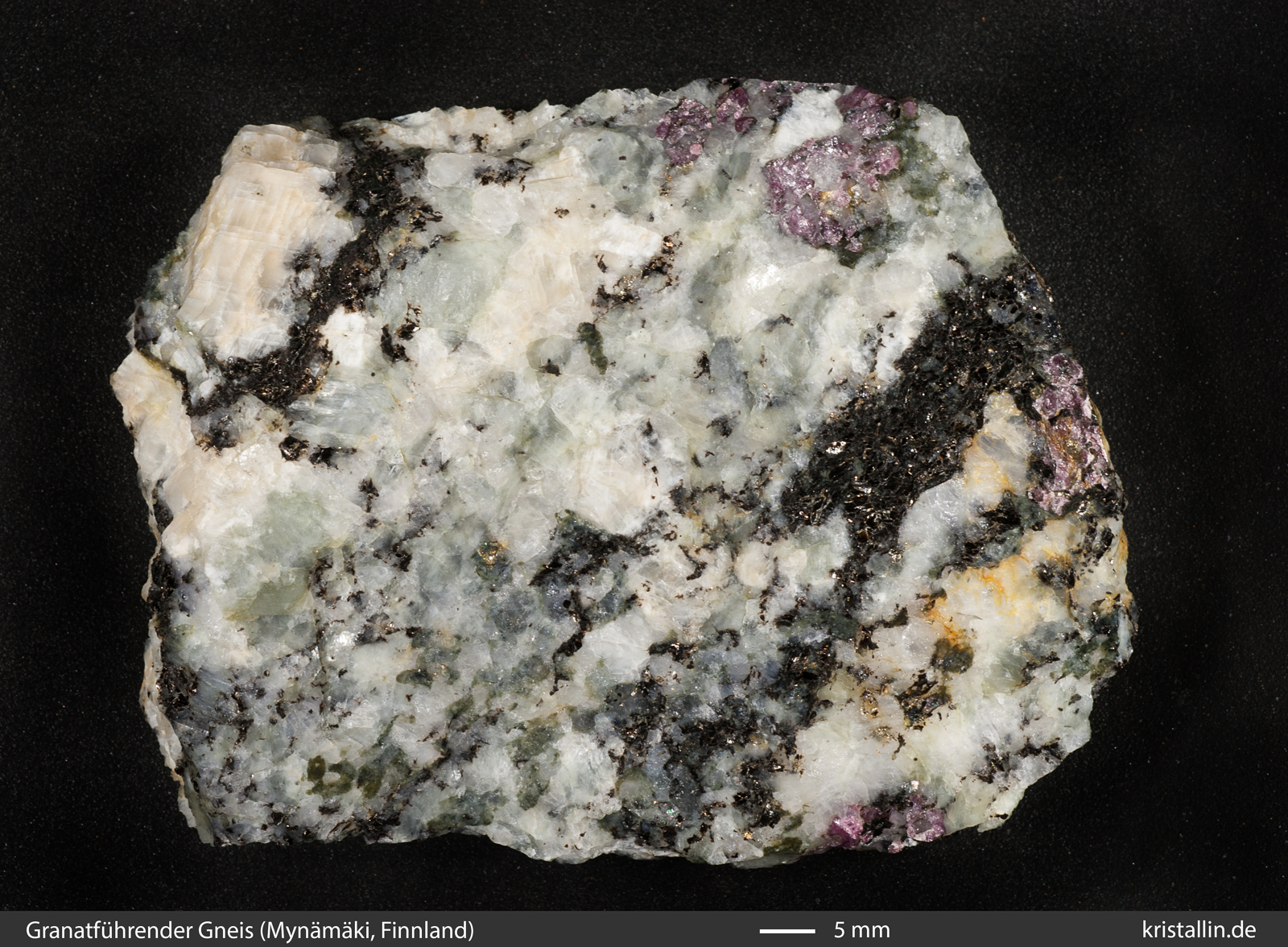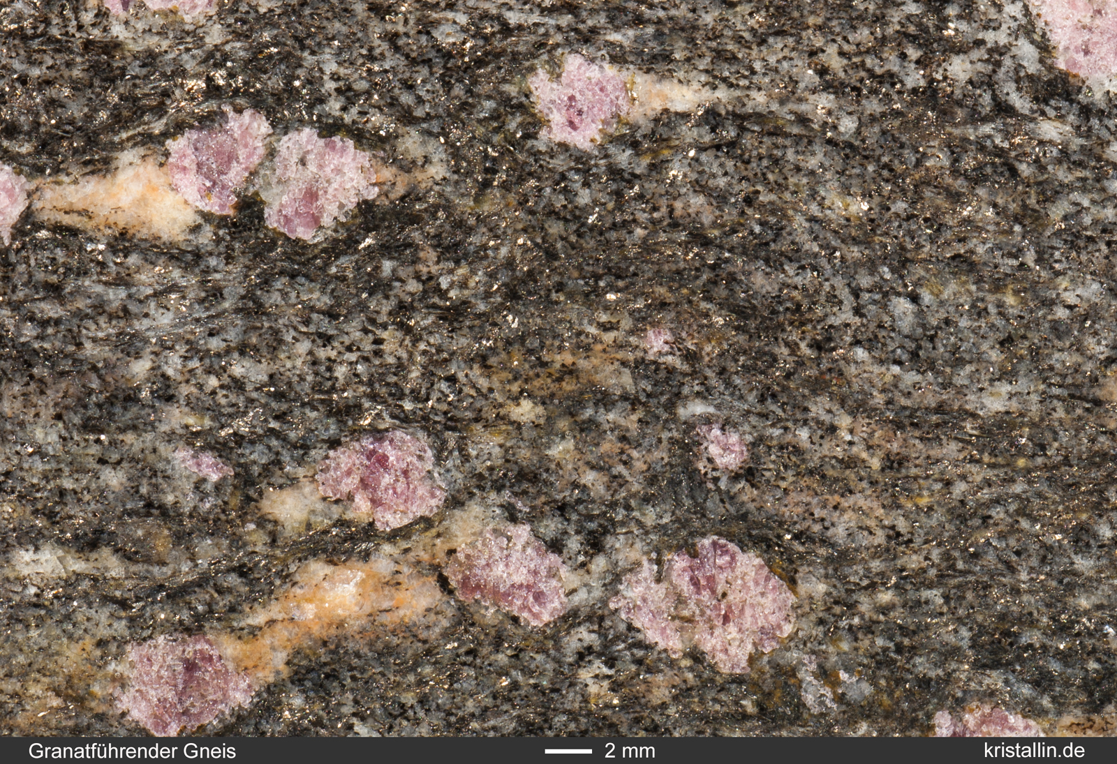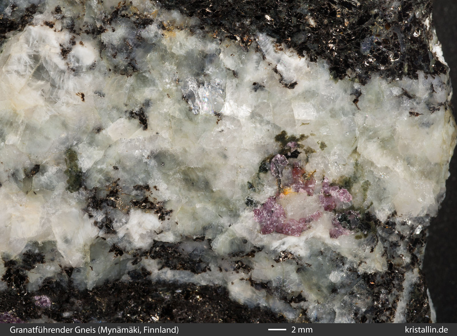 sowie Quarz. Im zweiten Gneis sind die Granate leicht violett. In der